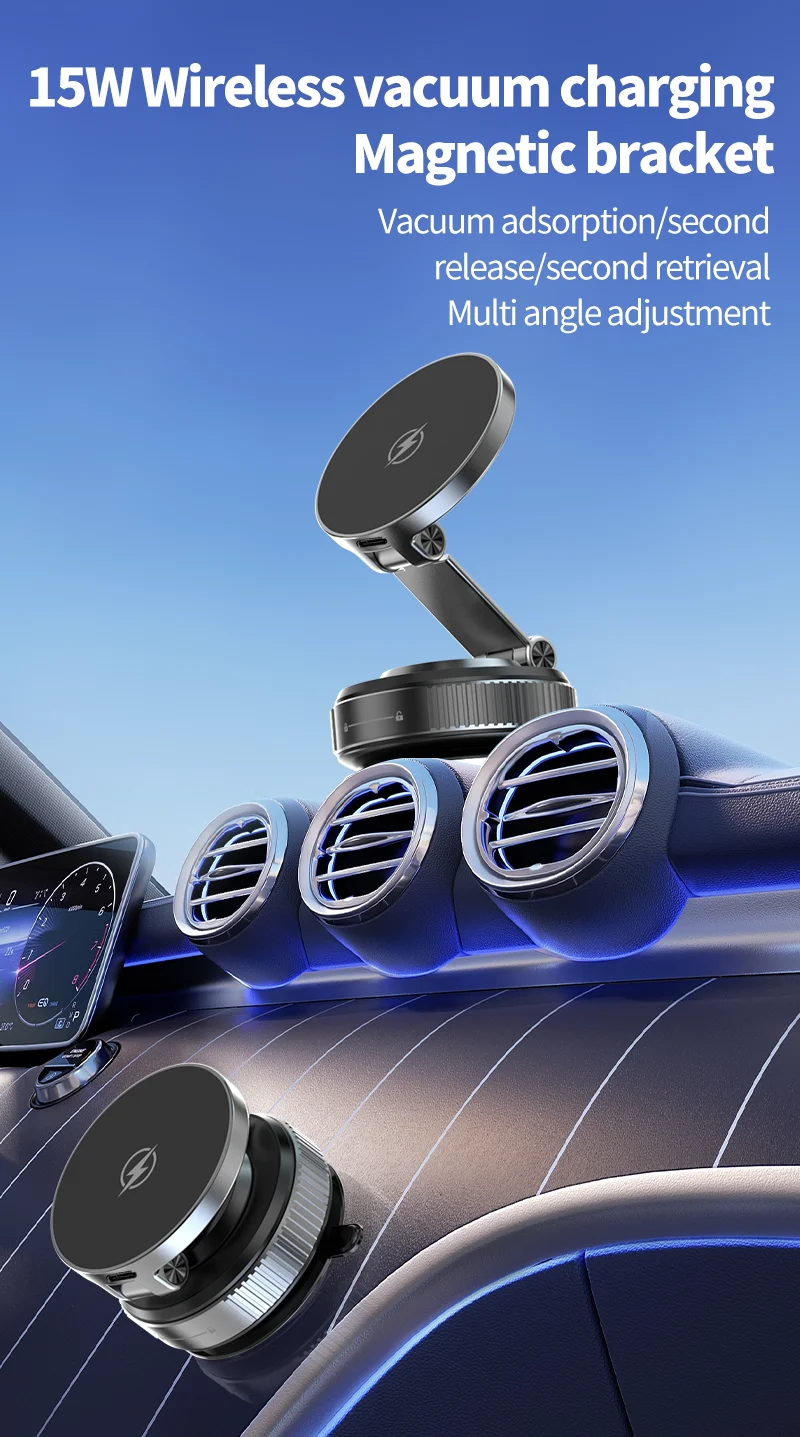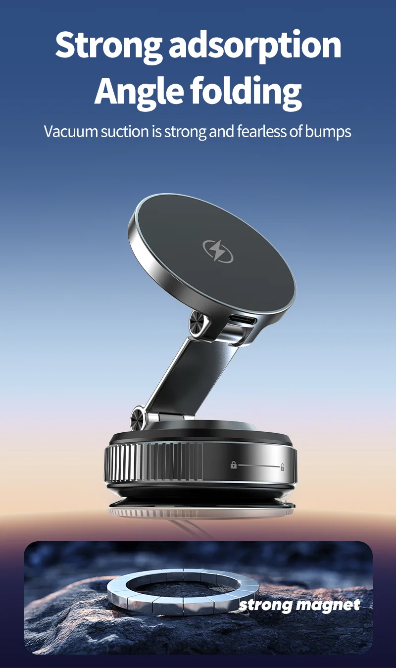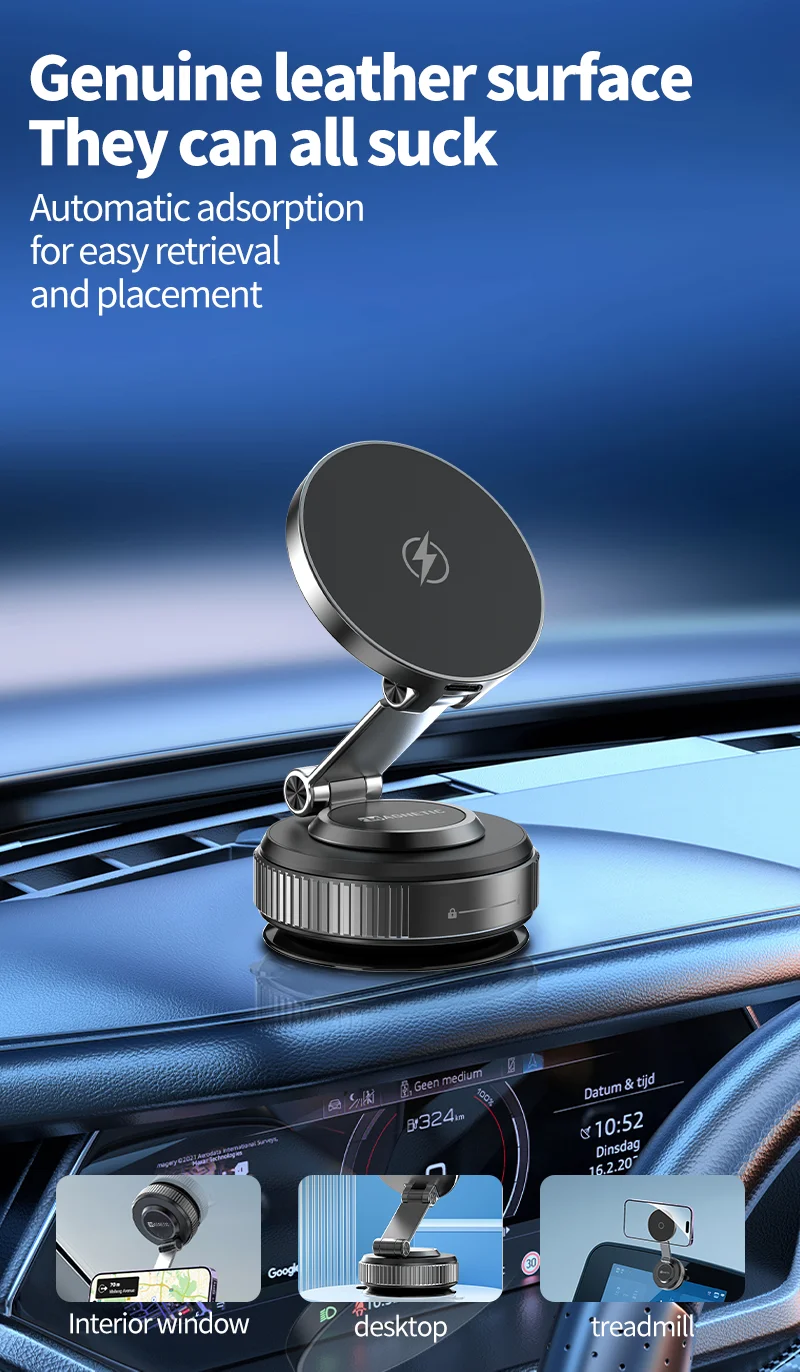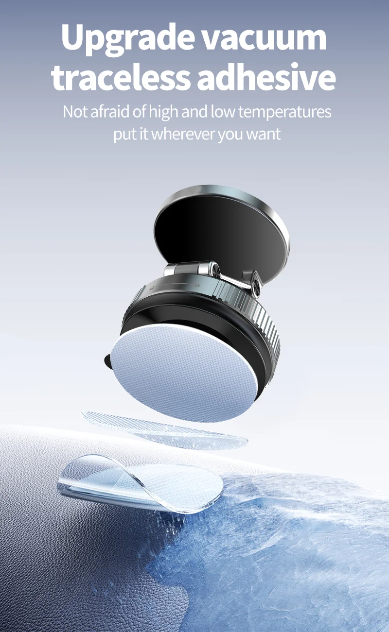 【Upgraded Vacuum Suction + N52 Magnetic Phone Holder for Car Charger】 Combining vacuum suction phone mount stability with N52 magnetic car phone holder strength, this mount withstands 212°F+ heat and stays rock-solid on windshields, tiles, or marble. Ideal for car wireless charger mount scenarios, it includes a smooth-surface base for dashboards and bumpy textures.