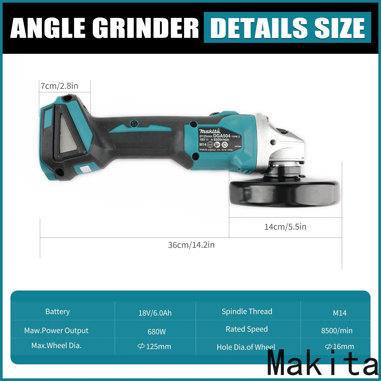 Makita DGA504 18V 125mm Brushless Lithium Electric Angle Grinder Rechargeable Polishing Machine Cutting