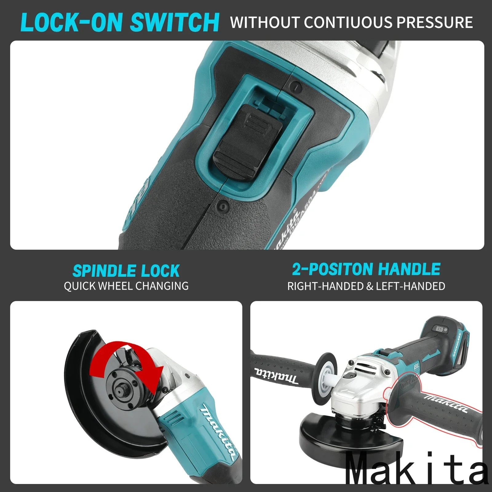 Makita DGA504 18V 6.0Ah 125mm Brushless Lithium Battery Angle Grinder Rechargeable Cutting Machine Multi-functional All-in-one B