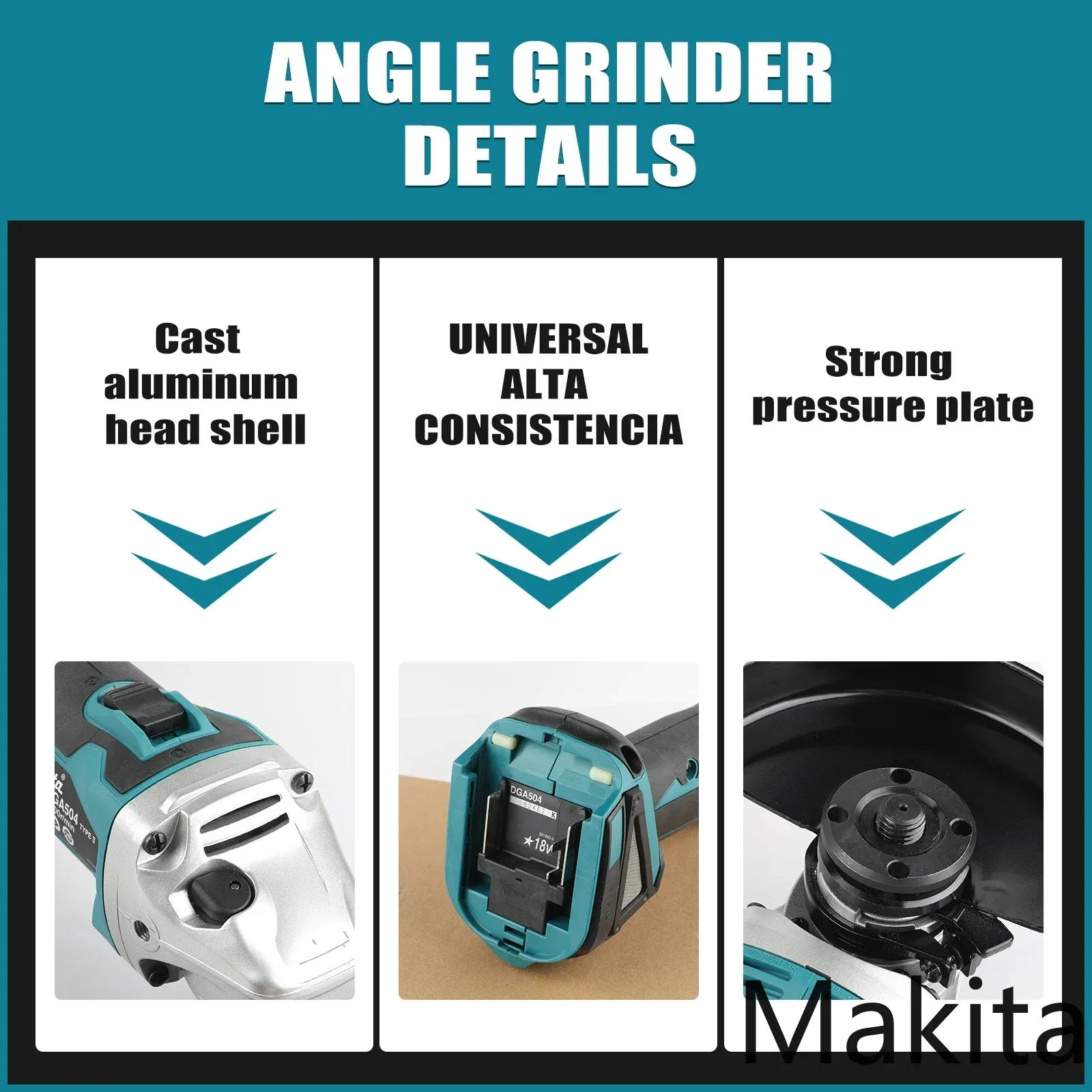 Makita DGA504 18V 6.0Ah 125mm brushless lithium battery with multiple electric grinders, angle grinders,