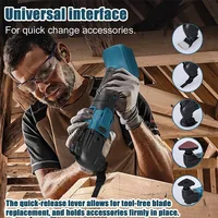 Universal interface for quick change accessories. The quick-release lever allows for tool-free blade replacement, and holds accessories firmly in place.