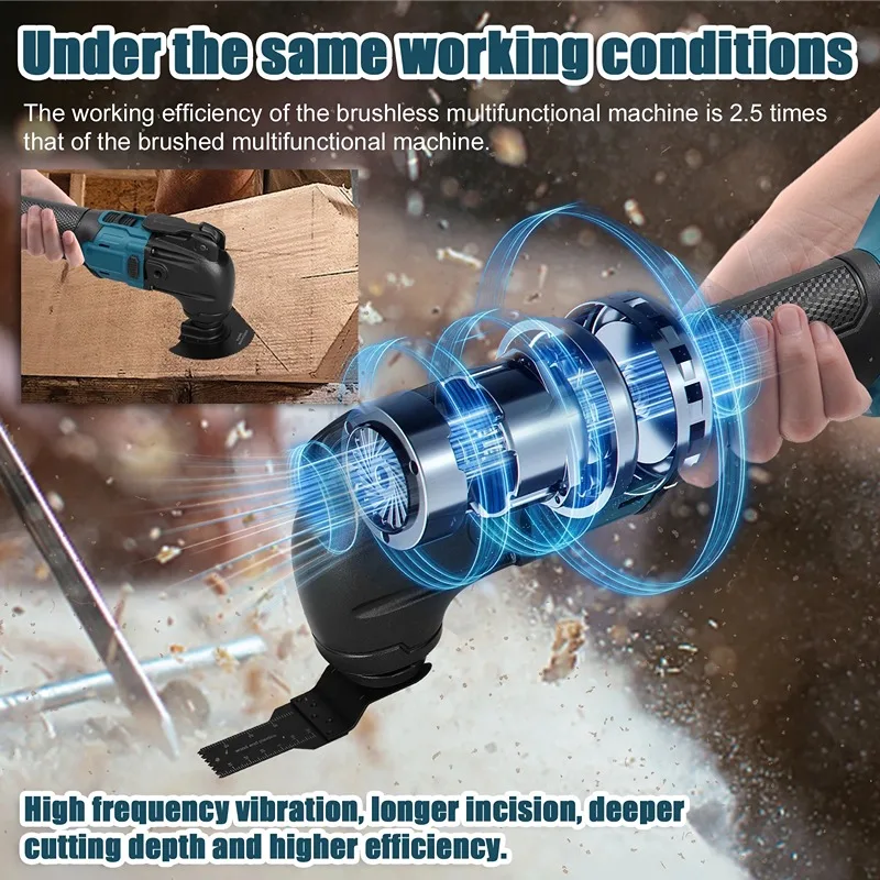 Under the same working conditions, the working efficiency of the brushless multifunctional machine is 2.5 times that of the brushed multifunctional machine.
