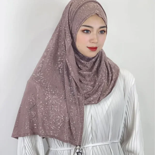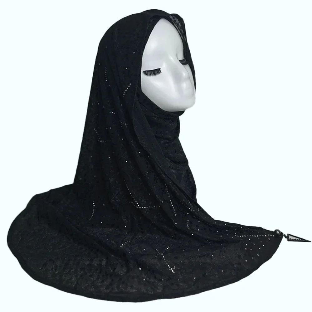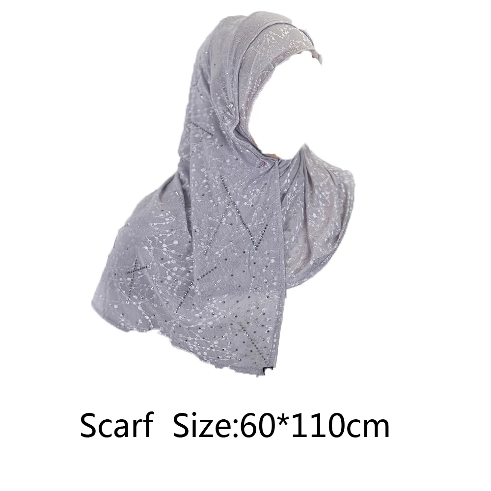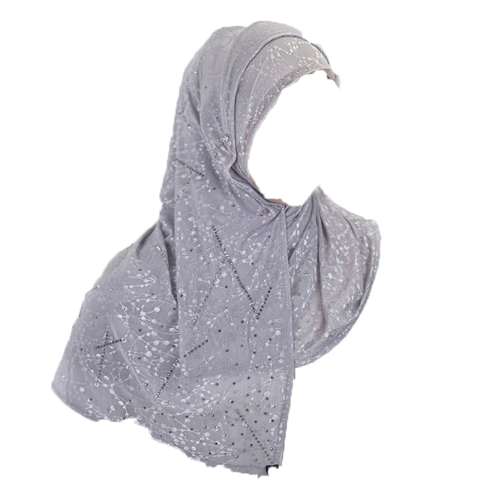 Muslim Girls Hijab Lace Flowers Pull On Amira Islamic Scarf Head Wrap Headscarf Diamonds Hijabs Ready Made To Wear Instant Amira
