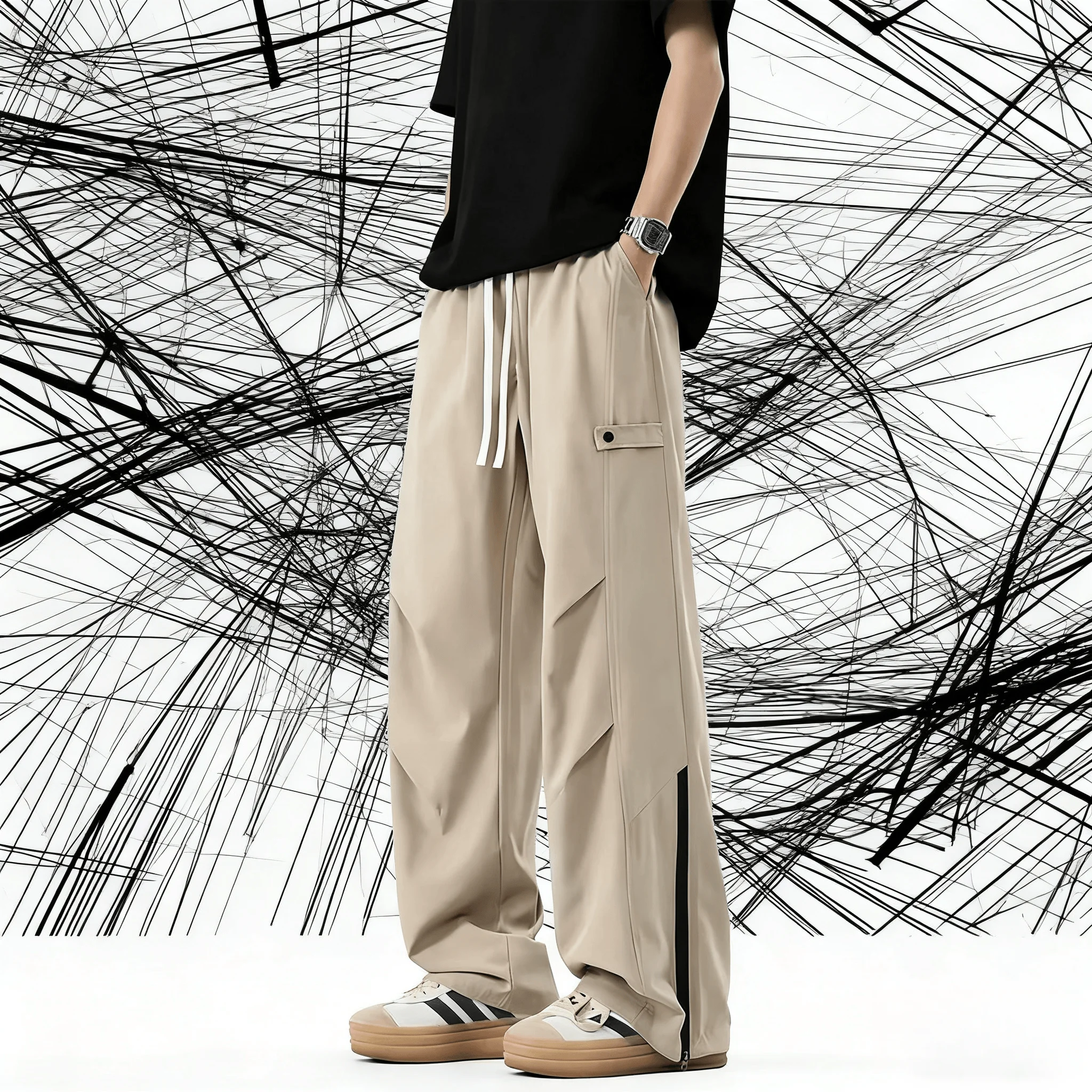 Male Vintage Cargo Pants Streetwear Wide Leg Pants Men Fashion Men Trousers Loose Casual Baggy Jogging
