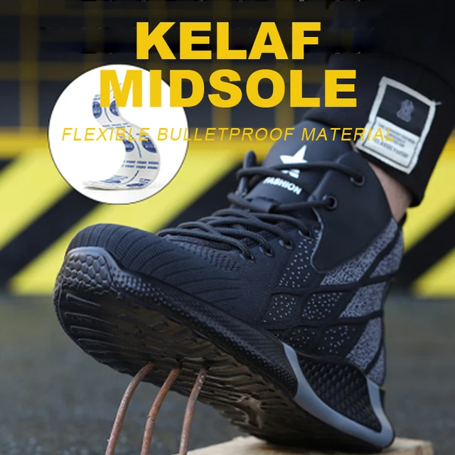 Kevlar Midsole Anti-puncture:This steel toe shoes are made of Kevlar, which is a protective fiber material. It can protect feet from being punctured by sharp objects like nails, steel bar.