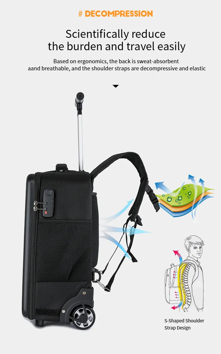 Rectangular Travel Carrier PC Large Size Lightweight Carry-on Suitcase with Five Wheels Luggage Case Travel Bag Spring Cushioned