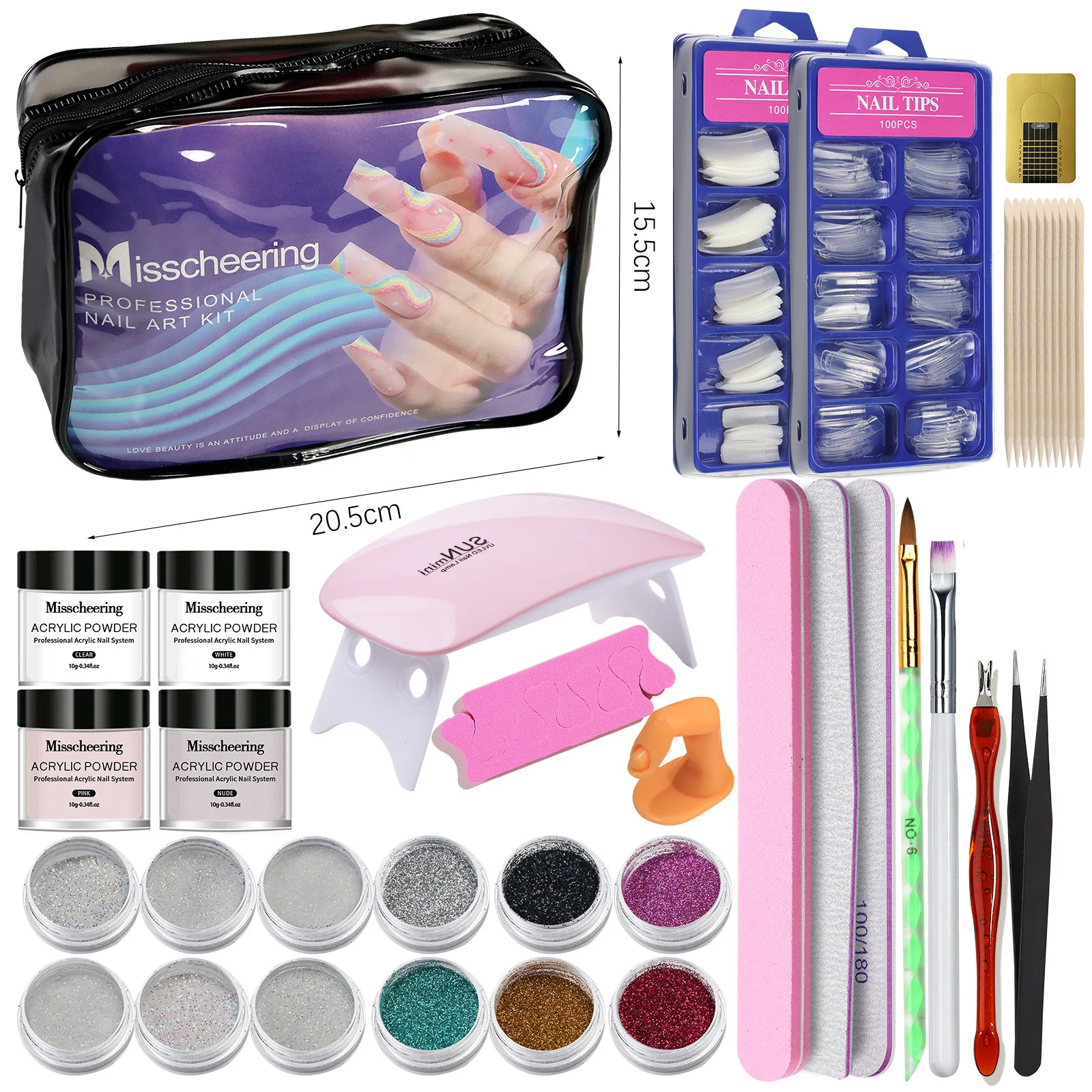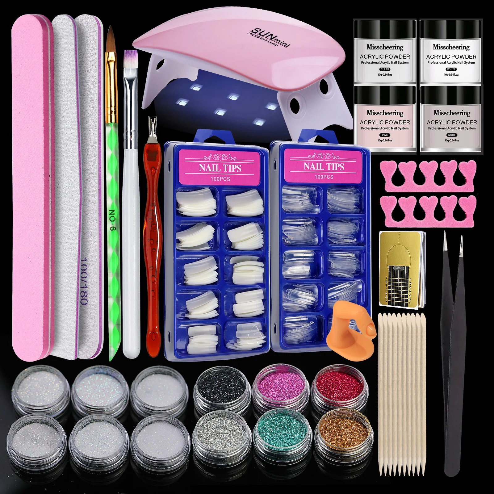 Manicure Set and Nail Art Kit Featuring LED Nail Lamp Full Beginner Bundle with Glitter,French Press-On