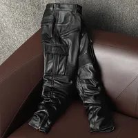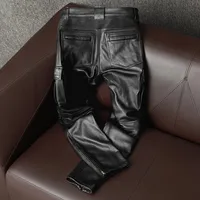 Mauroicardi Spring Cool Black Pu Leather Moto & Biker Pencil Pants Men High Waist Luxury Mens Designer
