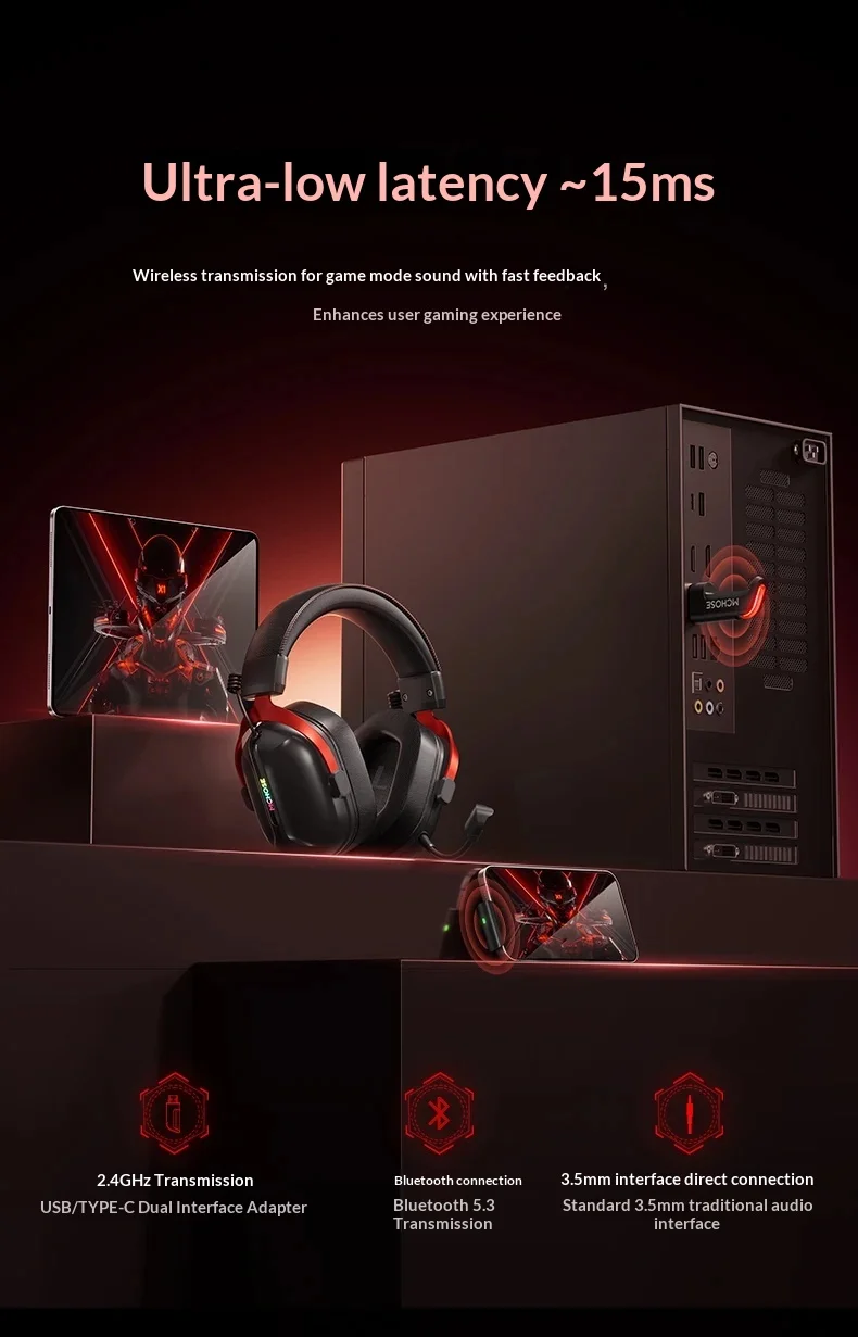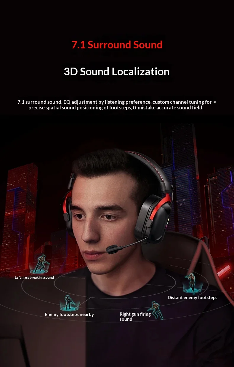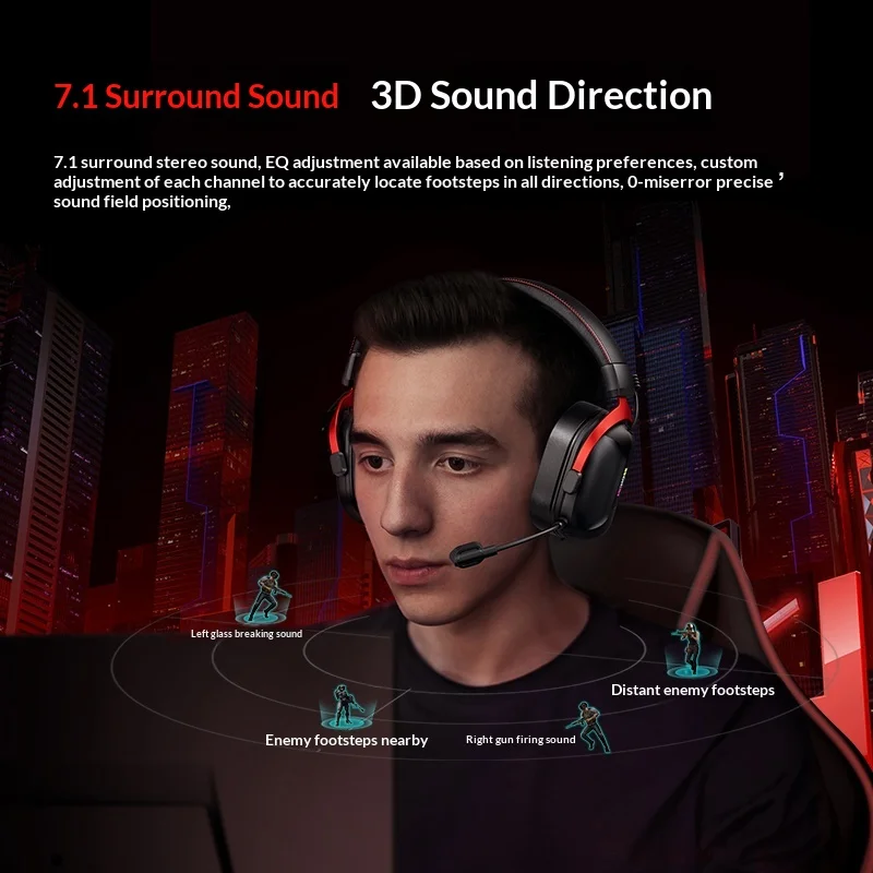 2. Professional game sound effects configuration: supports 3D listening and positioning+custom adjustment of each channel, accurately captures environmental sound details, with a ultra-low latency of about 15ms, synchronized game operations without lag, and full immersion;