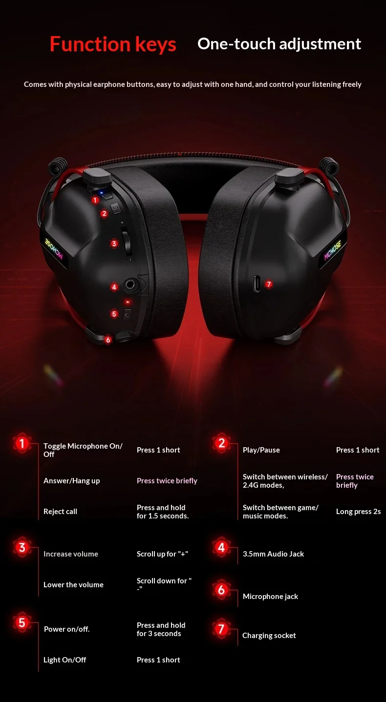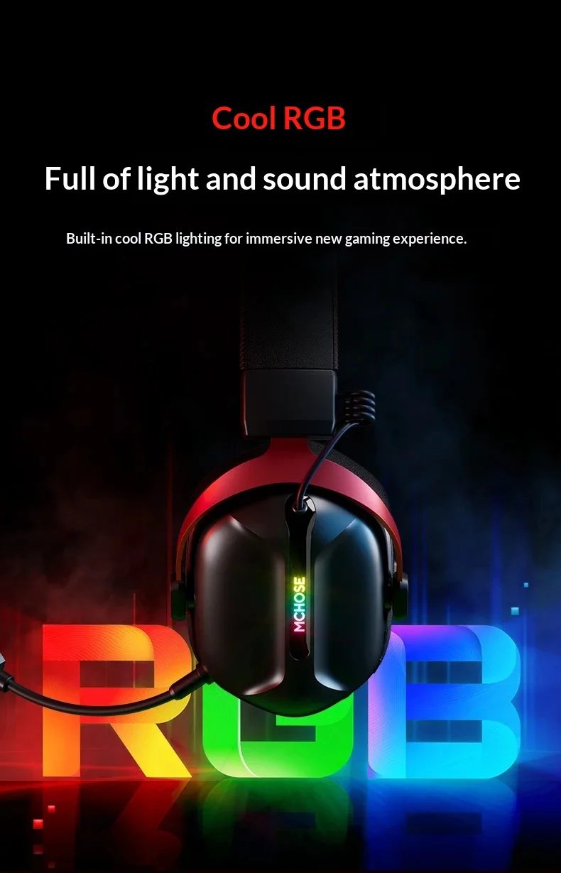 4. Cool appearance and practical design: Equipped with a built-in cool RGB lighting system, multiple lighting modes to enhance the atmosphere, and a detachable microphone for clear and noise free calls, suitable for both gaming and daily communication;