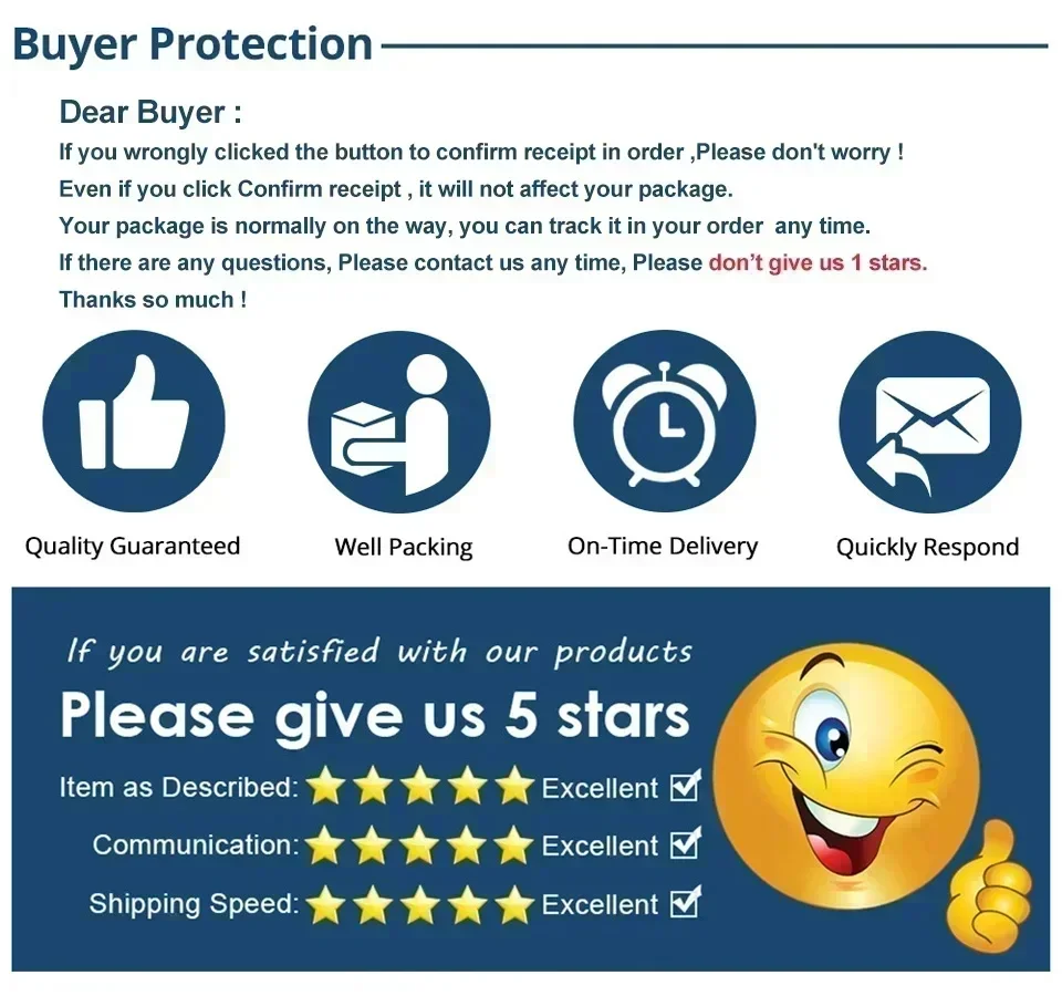 Tip: If you encounter any problems after receiving the goods, please do not immediately open a dispute, as this will lower the rating of our store and even lead to store closure and inability to shop. Please make sure to contact our customer service as soon as possible. We believe we can solve all your problems.