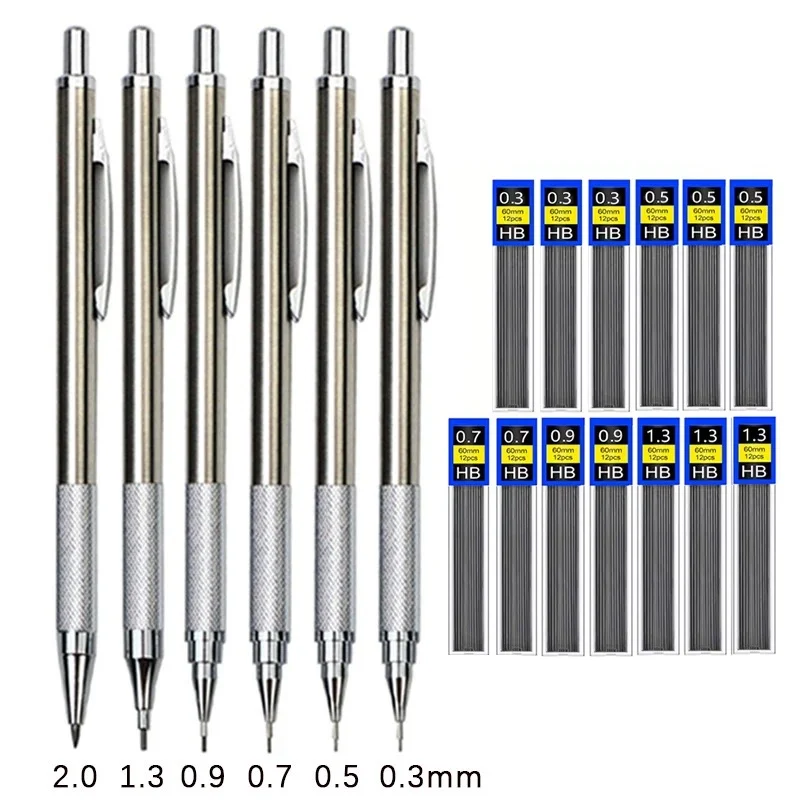 Mechanical Pencil Set 0.3 0.5 0.7 0.9 1.3 2.0mm Full Metal Art Drawing Painting Automatic Pencil For School Supply Home & Office
