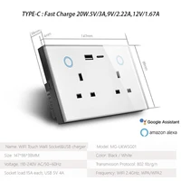 Melery WIFI Smart Tuya USB Type C Wall Socket UK Plug Outlet Power Touch Switch Wireless Energy Monitoring by Alexa Google Home
