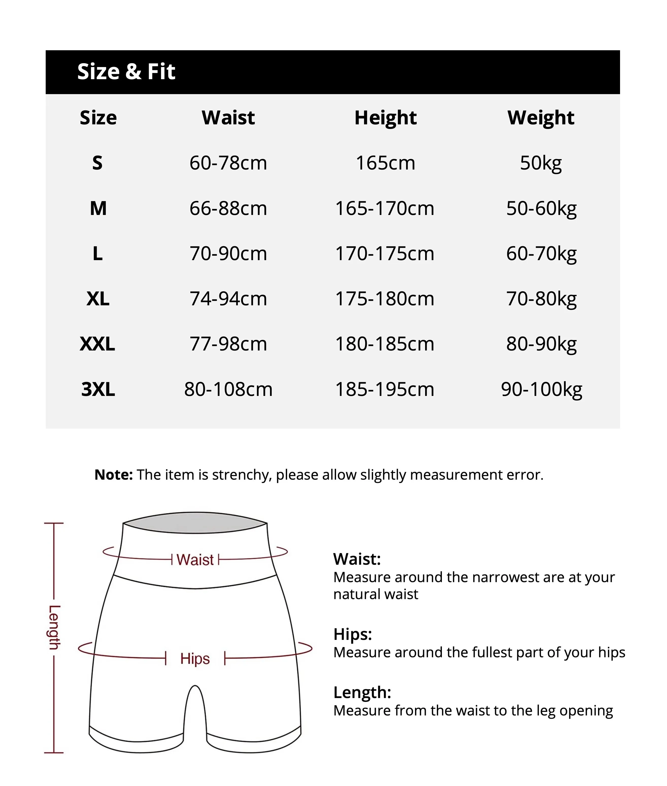 Size S / M / L / XL / XXL / 3XL