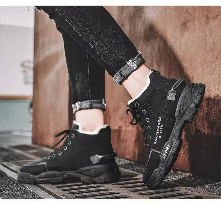 Men's High Top Faion oes Motorcycle And Ankle Boots Spring Autumn PU Leather ort Tube Inner Material Pig Skin