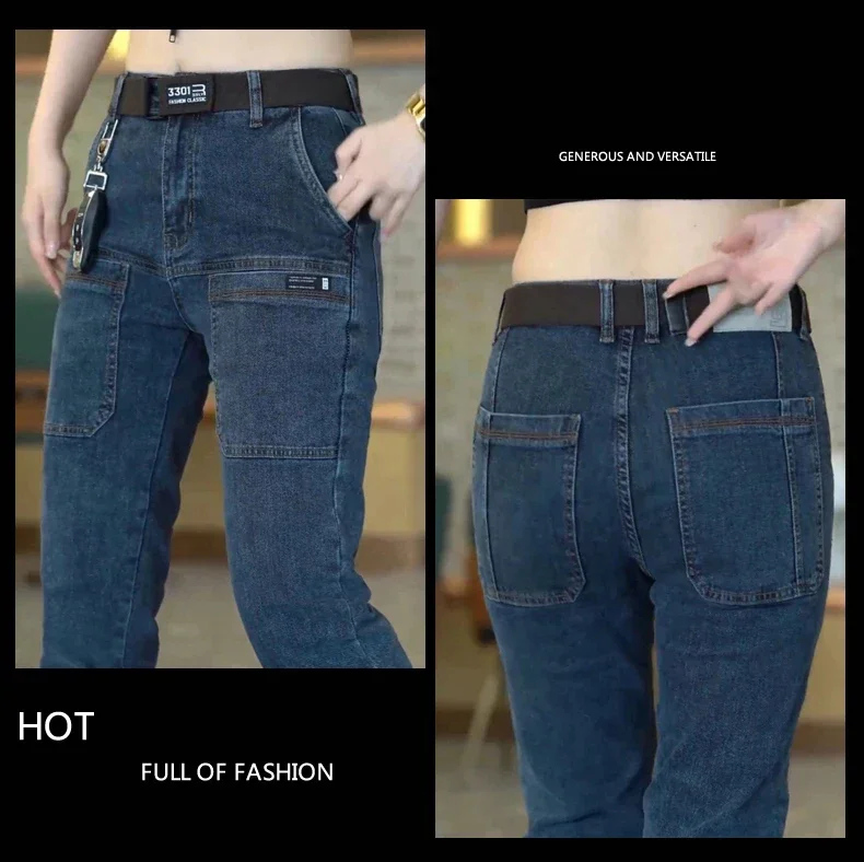 Men Cargo Pants Slim Stretch Jeans Multi Pocket Fashion Streetwear Designer Skinny Male Denim Trousers Brand Clothes Blue Black