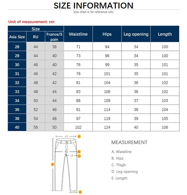 1. The size is Chinese size, pants size 32 = 32 inches waist = 81.5cm waist.