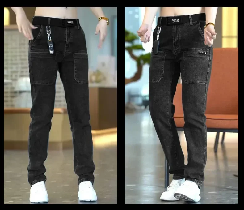 Men Cargo Pants Slim Stretch Jeans Multi Pocket Fashion Streetwear Designer Skinny Male Denim Trousers