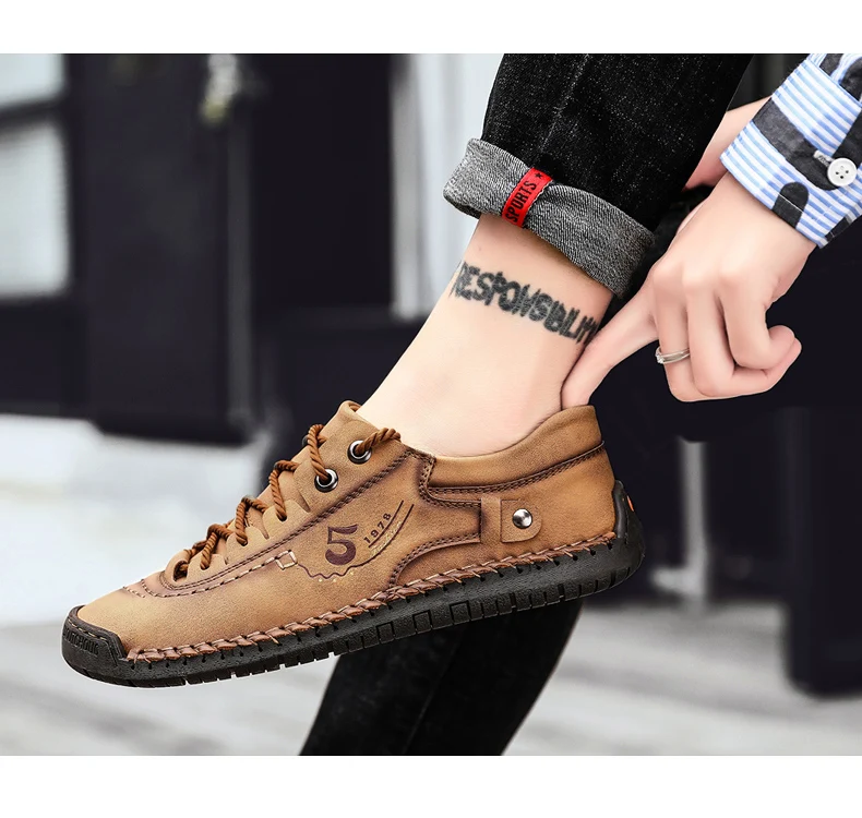 Men Casual Shoes Leather Outdoor Walking Sneakers 2021 New Fashion Male Leisure Vacation Soft Driving