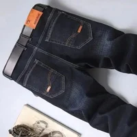 Men  Comfortable Soft Business Fashion Straight Casual Denim Trousers Male Brand Clothing Light Luxury Stretch Slim Fit Pants