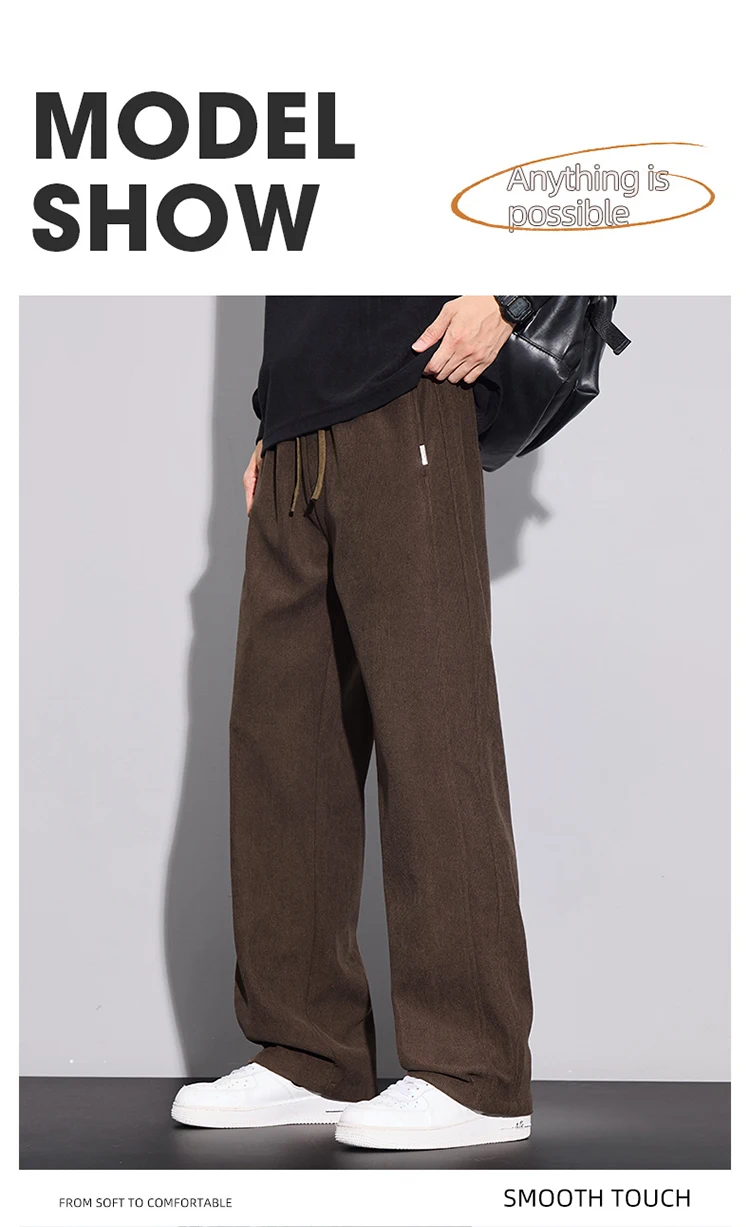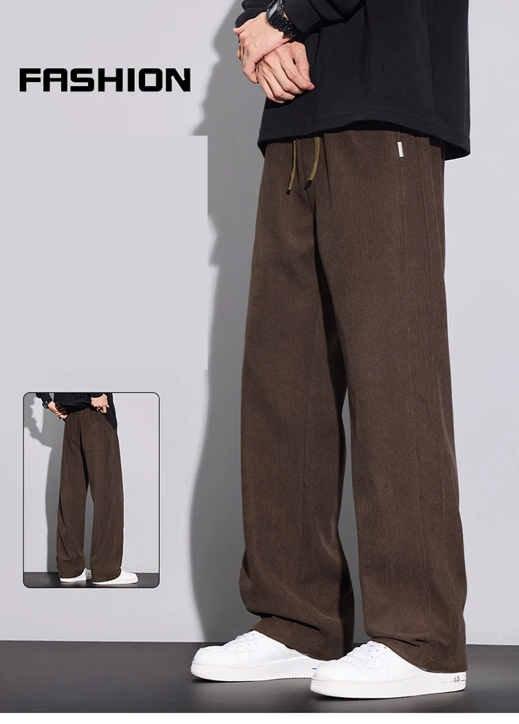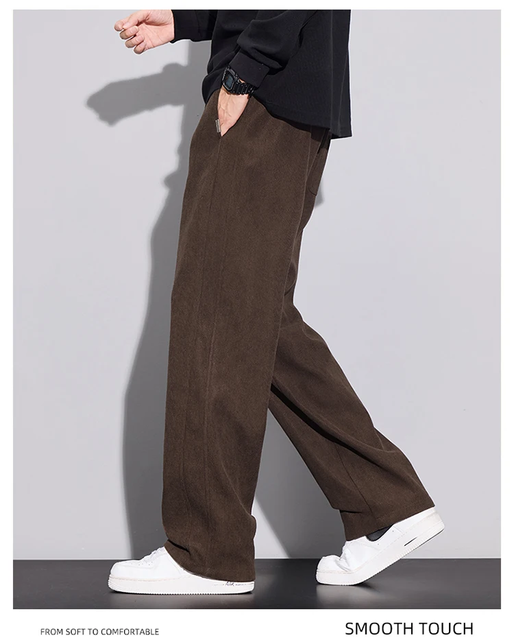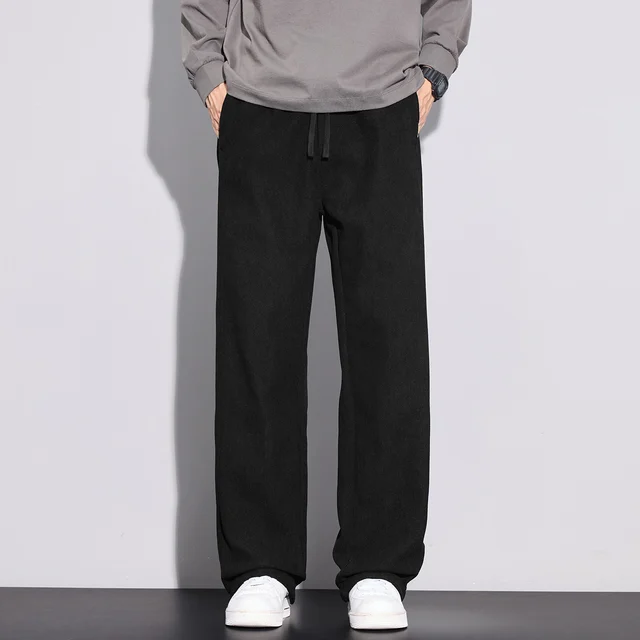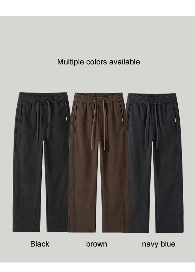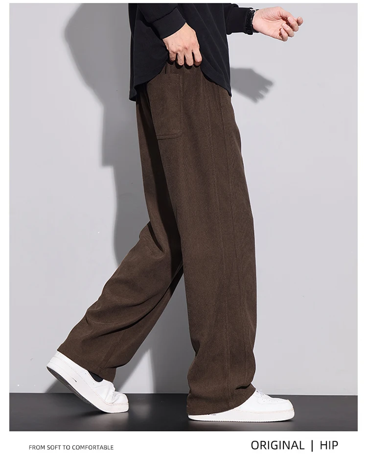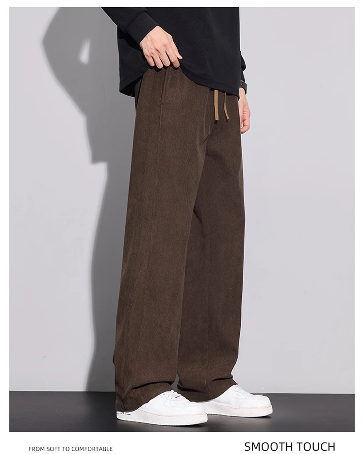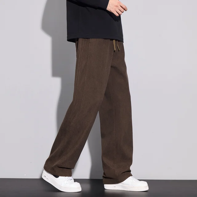 Men Corduroy Casual Straight Loose Pants Autumn winter Solid Color Elastic Waist Sports Resistant Sweatpants