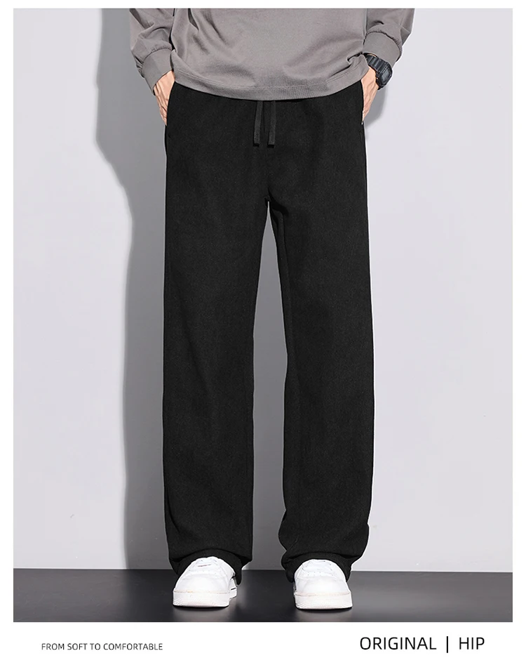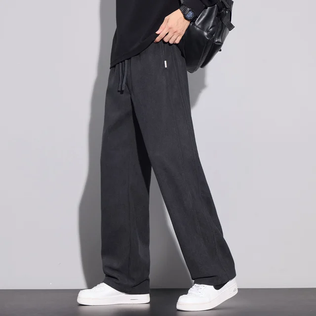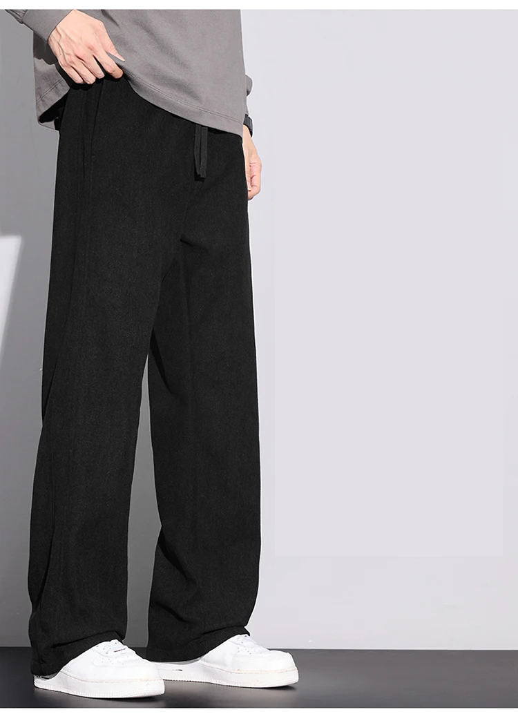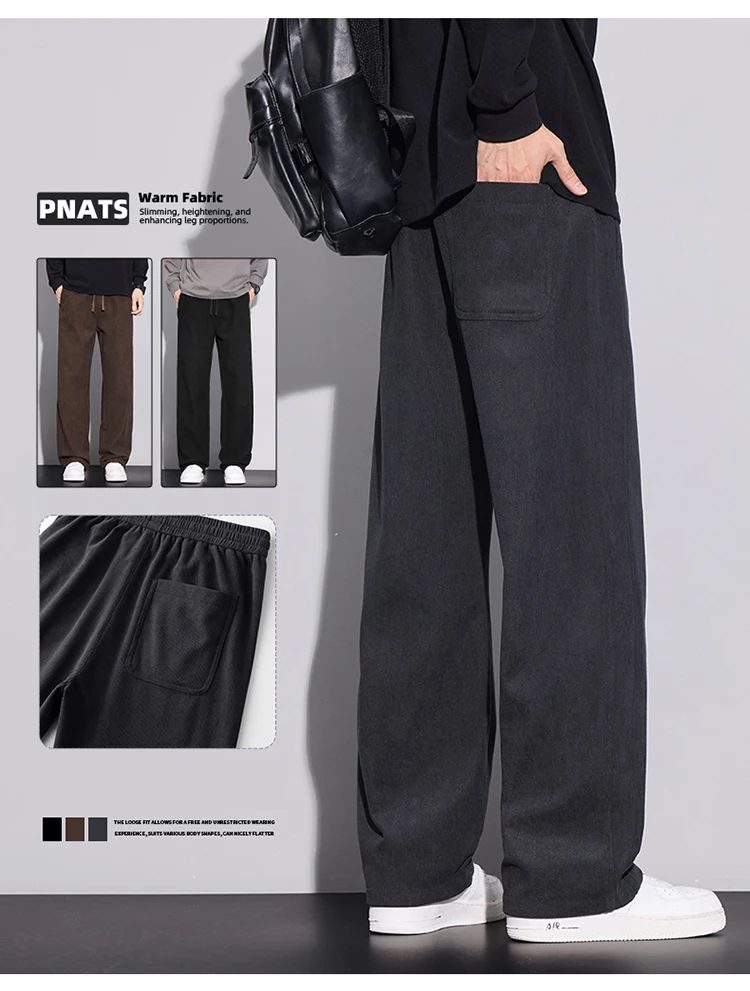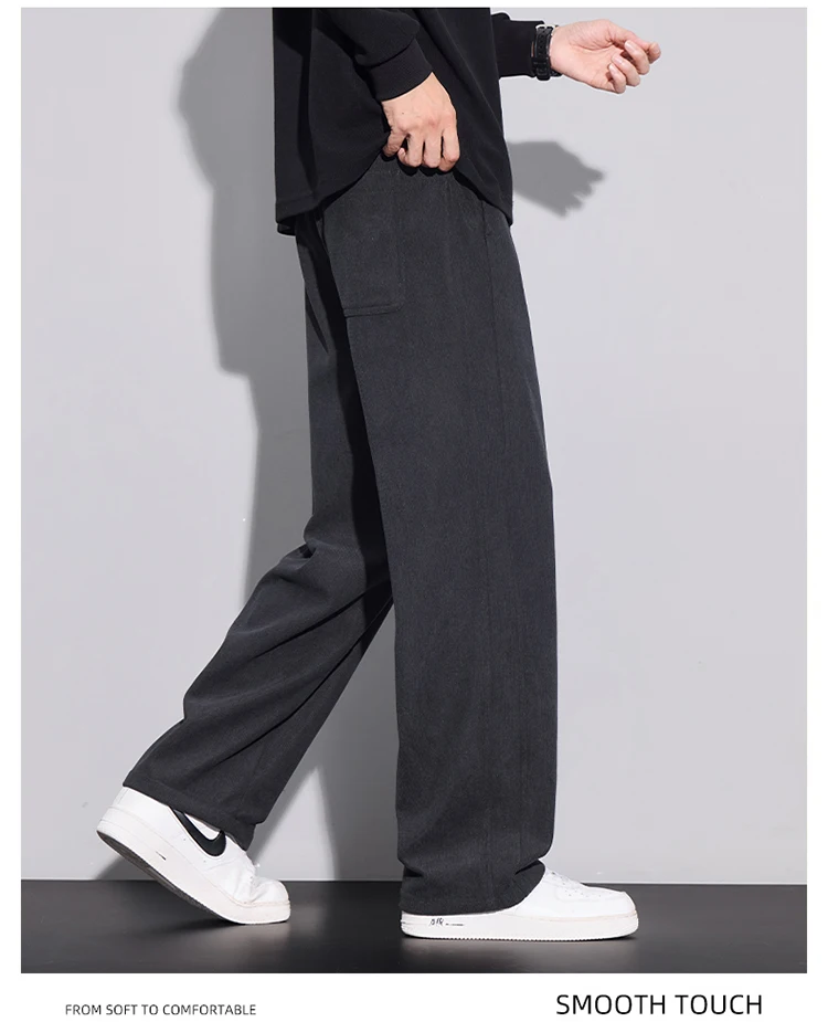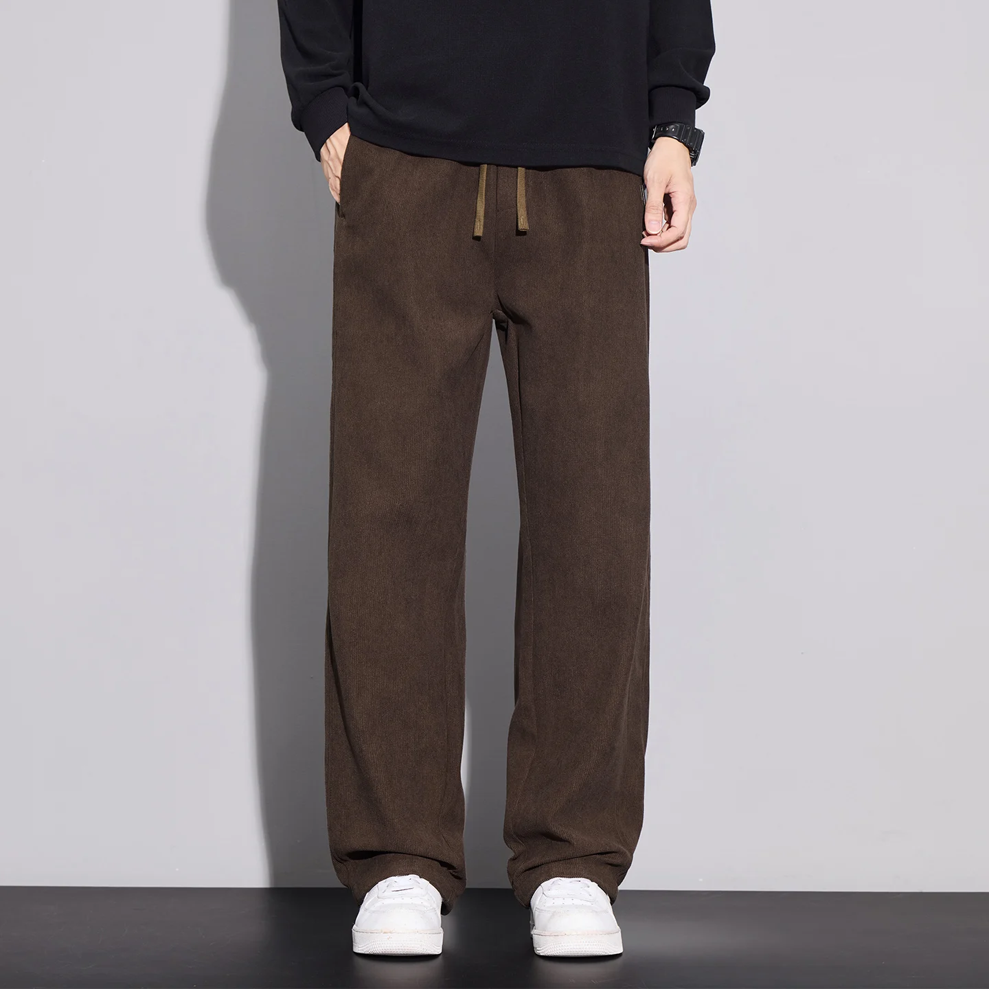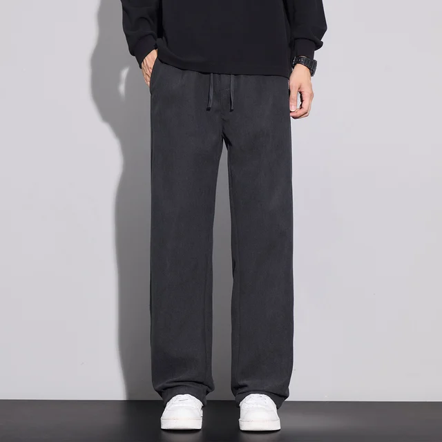 Men Corduroy Casual Straight Loose Pants Autumn winter Solid Color Elastic Waist Sports Resistant Sweatpants