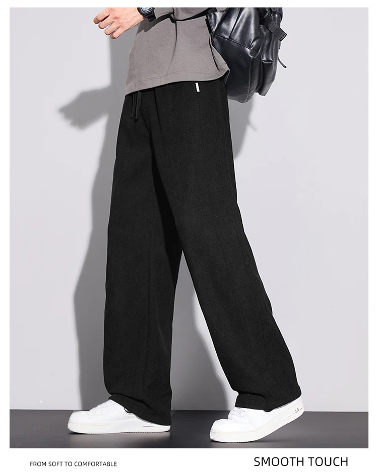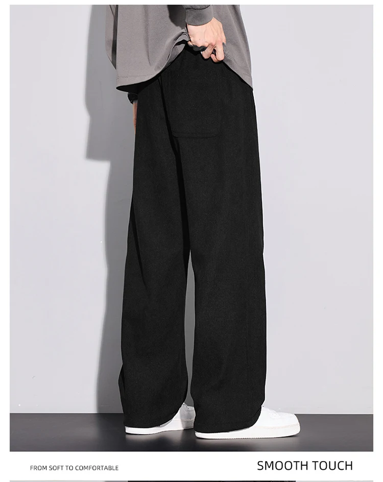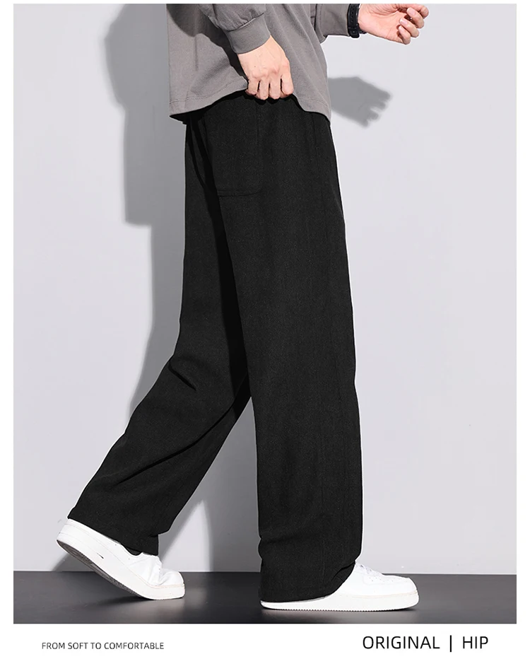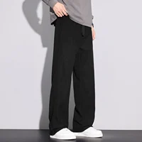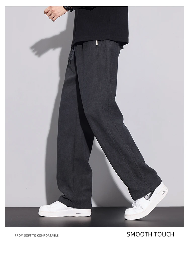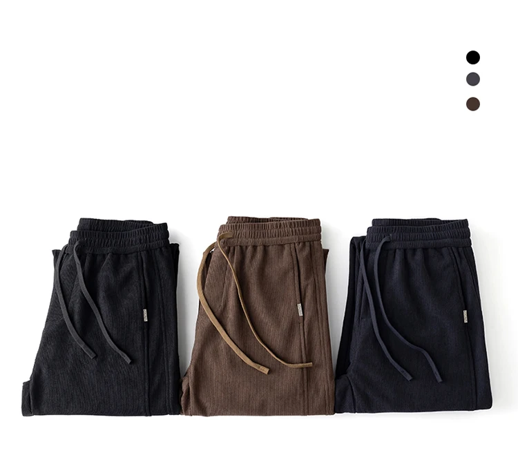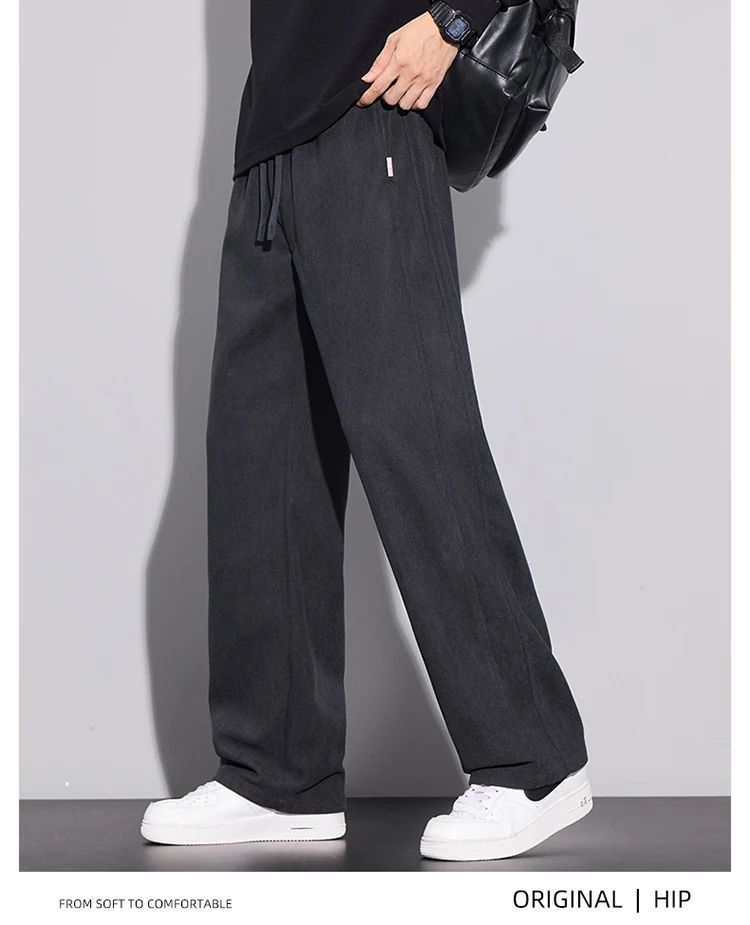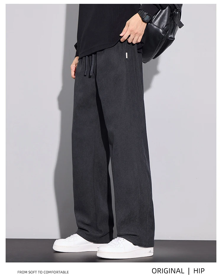 Men Corduroy Casual Straight Loose Pants Autumn winter Solid Color Elastic Waist Sports Resistant Sweatpants