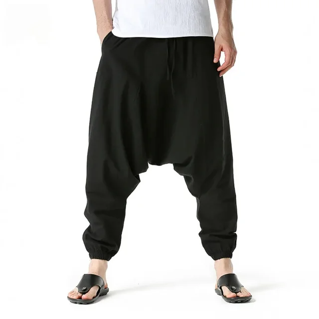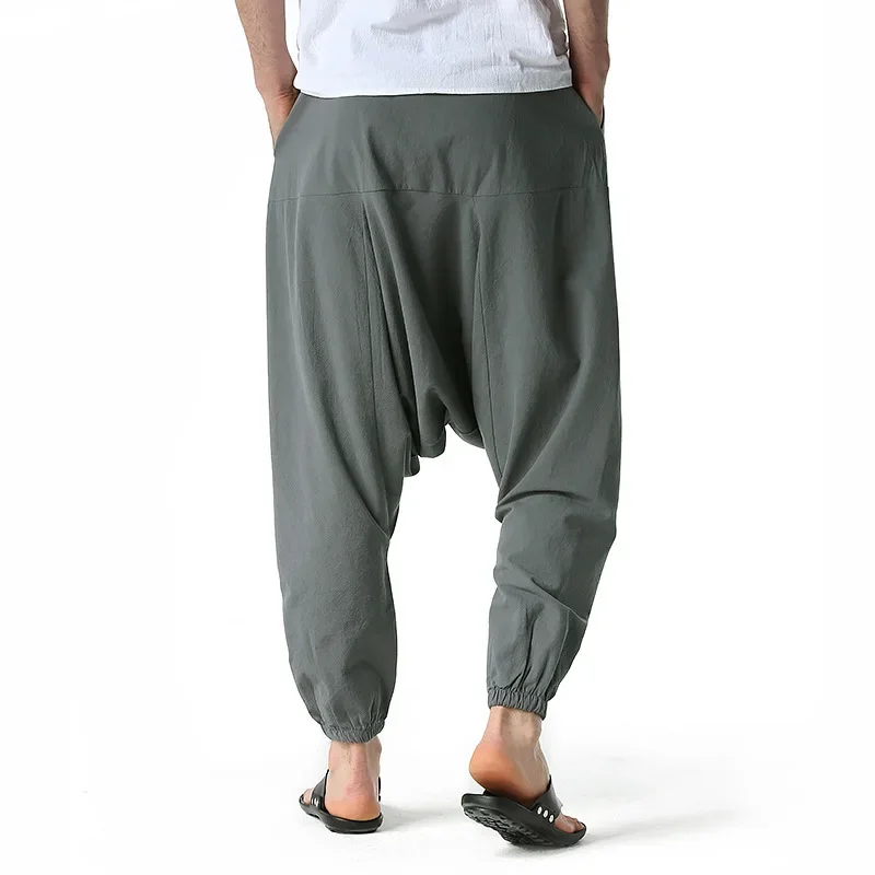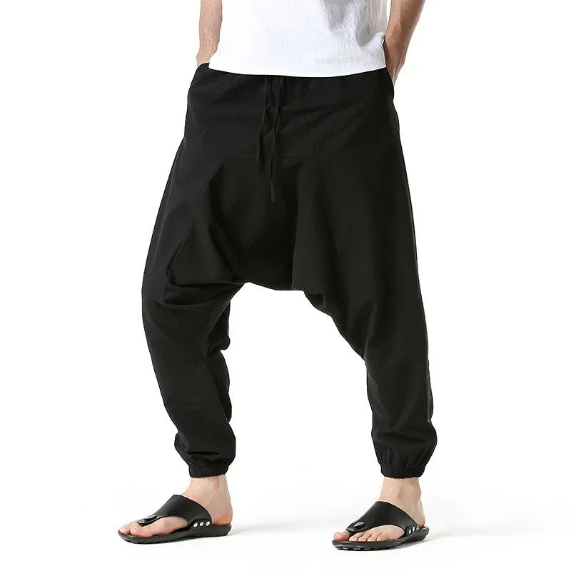 Men Drop Crotch Trousers Cotton and Linen Pants Harem Pants Baggy Casual Oversize Loose Joggers Wide