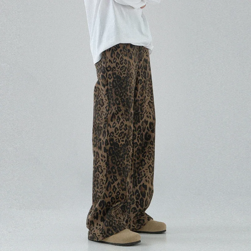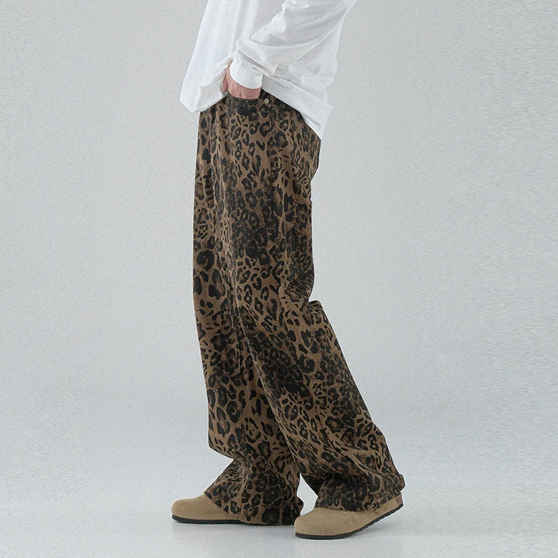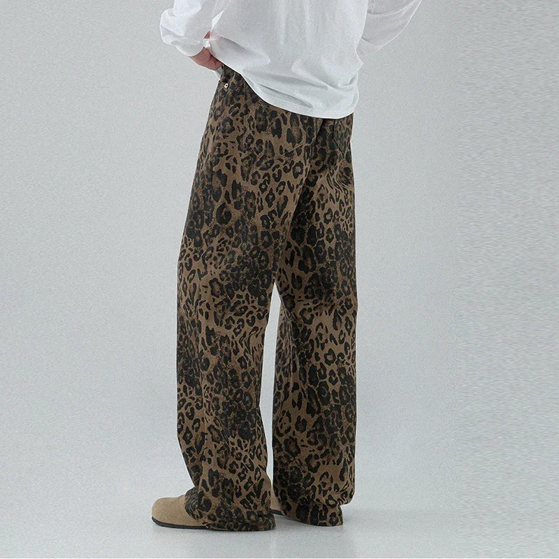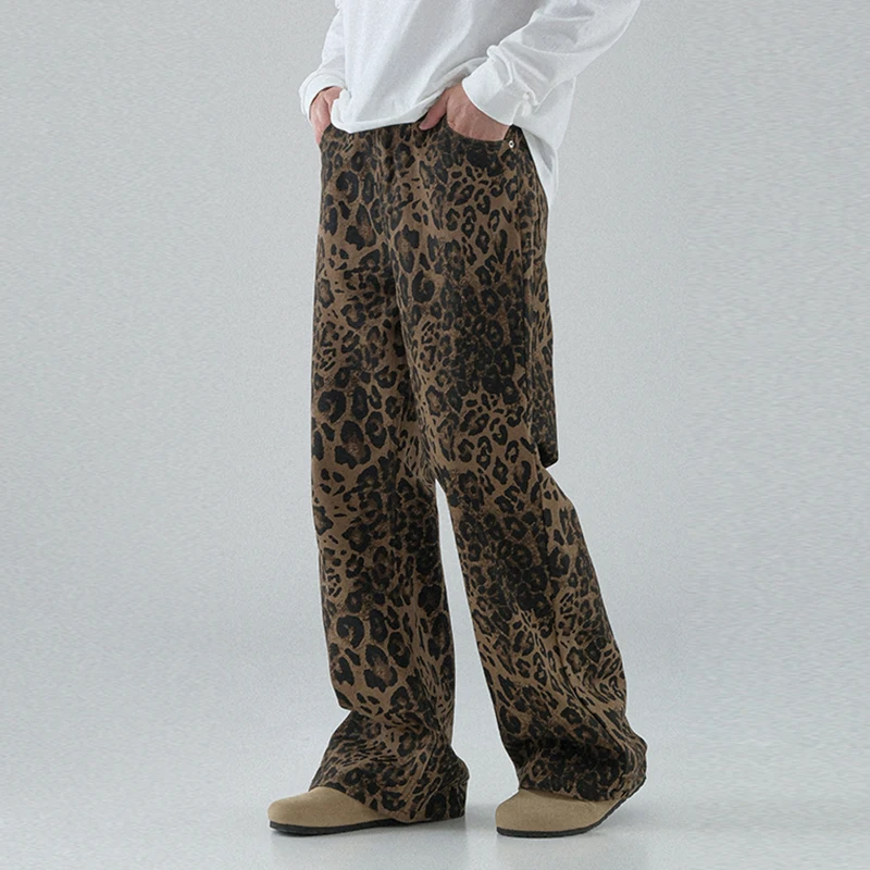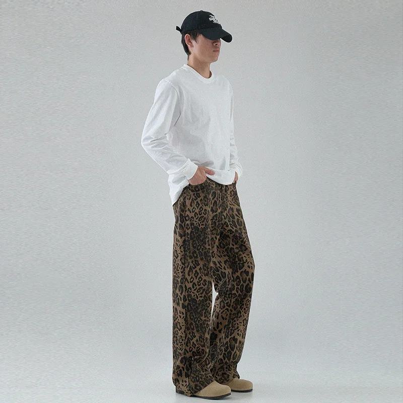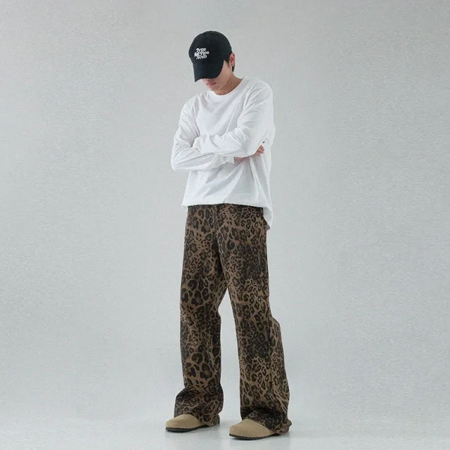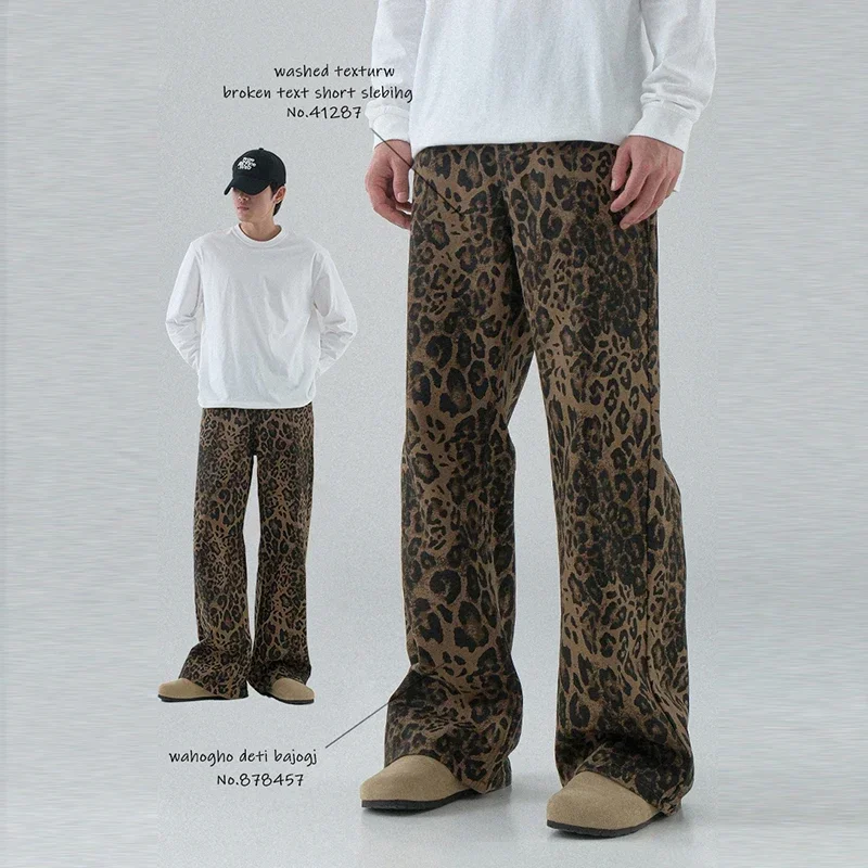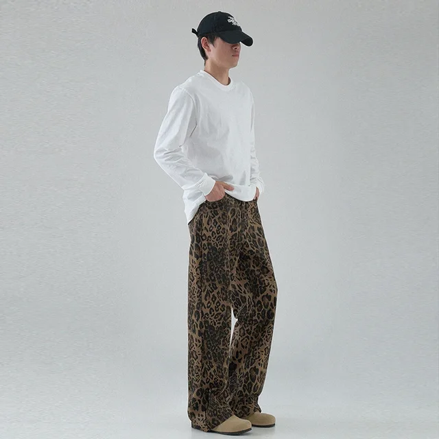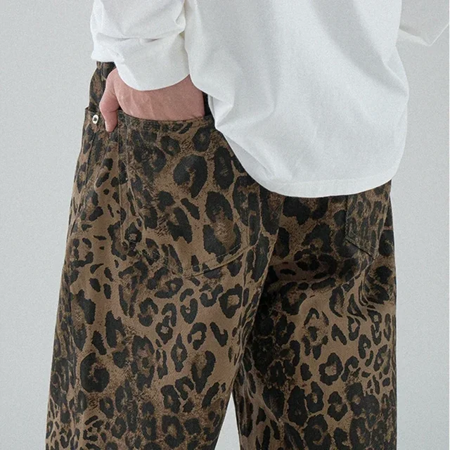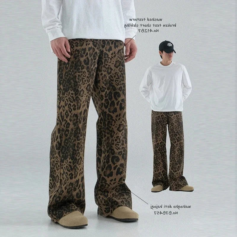 Men Fashion HIP HOP High Street Jeans Male Youth Popular Daily Streetwear Denim Pants Leopard Loose Straight