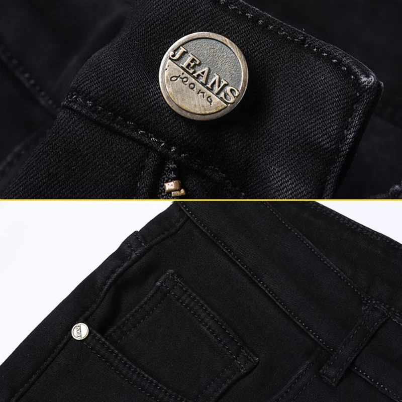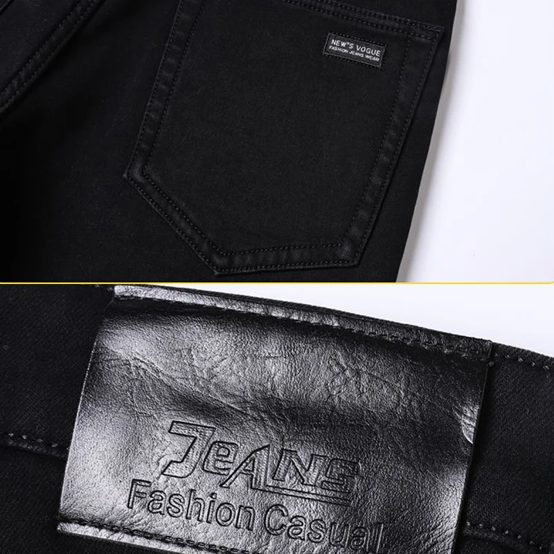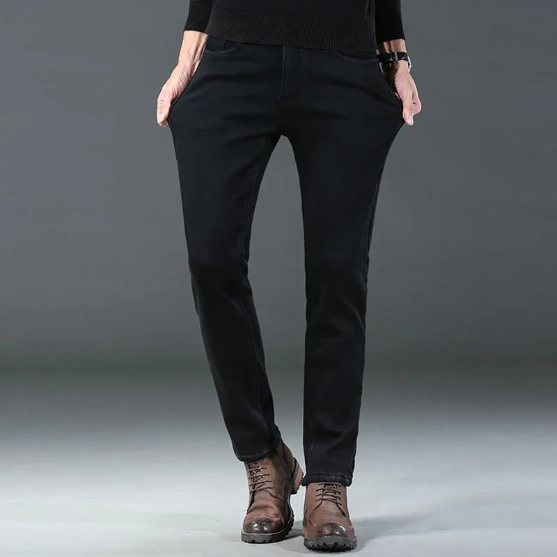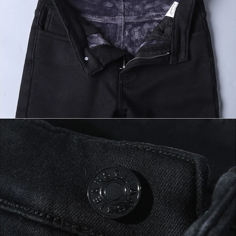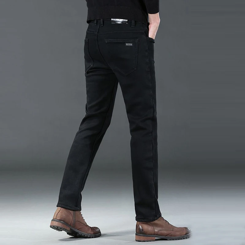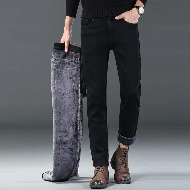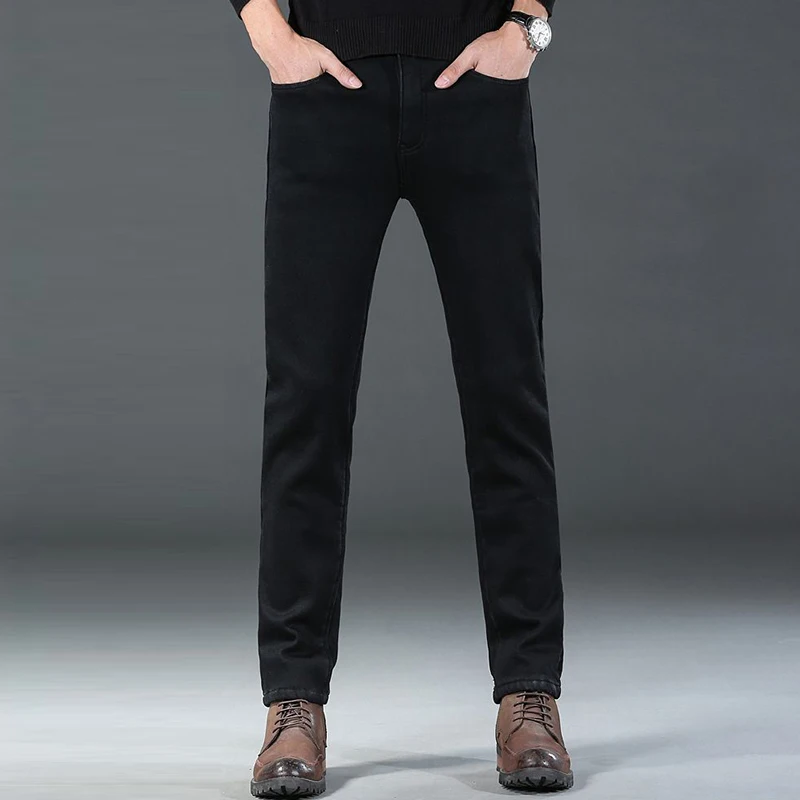 Men Fleece Lined Straight Jeans Male Winter Warm Fleece Lined Thickened Denim Pants Elasticity Comfortable