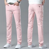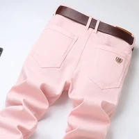 Classic Style Men's Autumn Wine Red Khaki Black Jeans Fashion Business Casual Straight Denim Stretch Trousers Male Brand Pants
