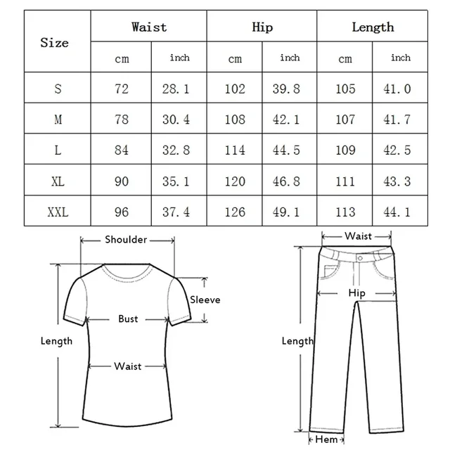 XXL =Waist 96cm , Length 113cm, Hip 126cm;