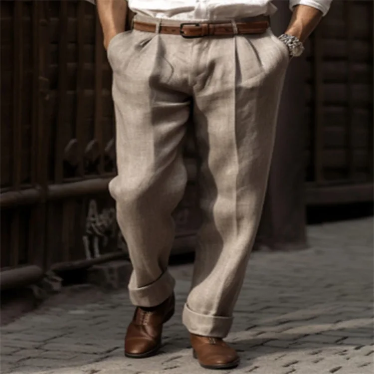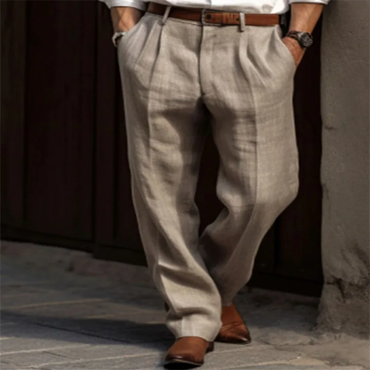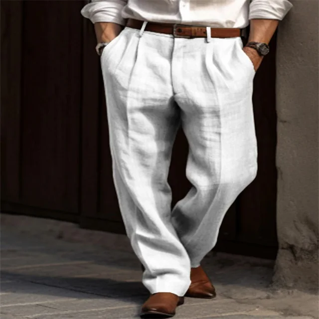 Men Linen Straight Solid Color Comfortable Breathable Casual Daily Cotton Fashion Trousers