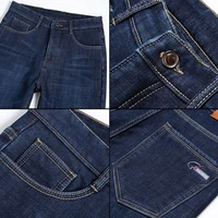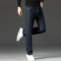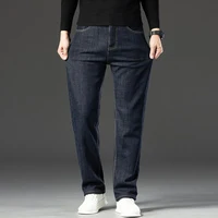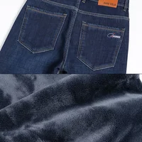 Men New Autumn Winter Fleece Lined Thickened Jeans Male Loose Straight Elasticity Denim Pants Warm Smart
