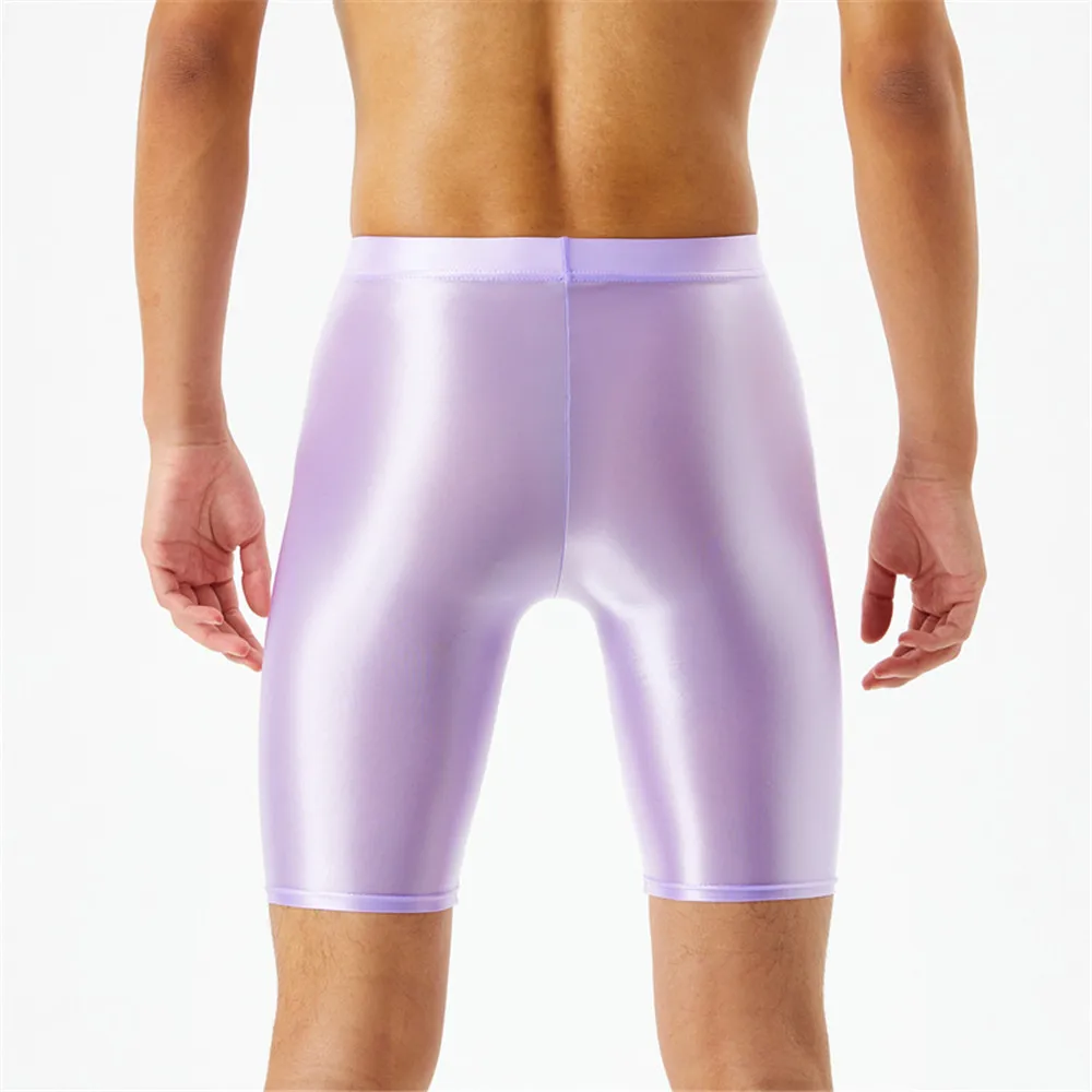 Men Oil Shiny Shorts gym Shapewear Ice Silk High Elastic Sexy Boxer Tight Shape U Pouch Sheath Man Shorts Smooth Candy Color