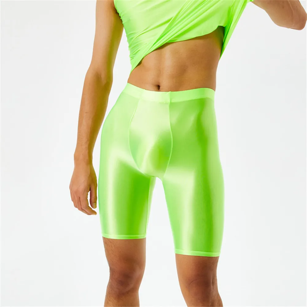Men Oil Shiny Shorts gym Shapewear Ice Silk High Elastic Sexy Boxer Tight Shape U Pouch Sheath Man Shorts