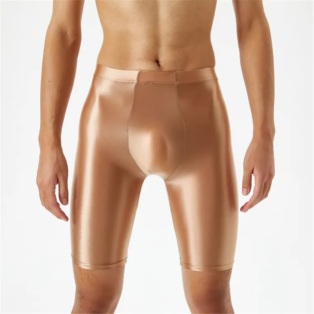 Men Oil Shiny Shorts gym Shapewear Ice Silk High Elastic Sexy Boxer Tight Shape U Pouch Sheath Man Shorts