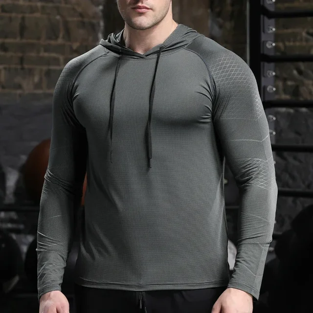 Men Outdoor Sports Hoodies Quick Dry Fit Long Sleeve Tops with Hood Male Running Activewear Casual Quick Dry Sweatshirts