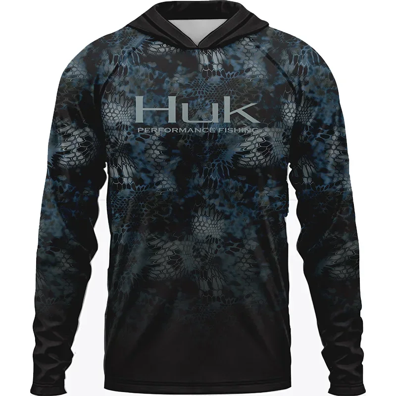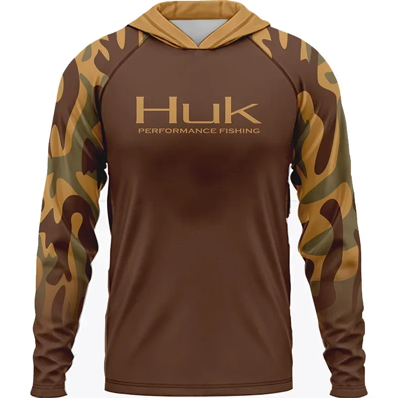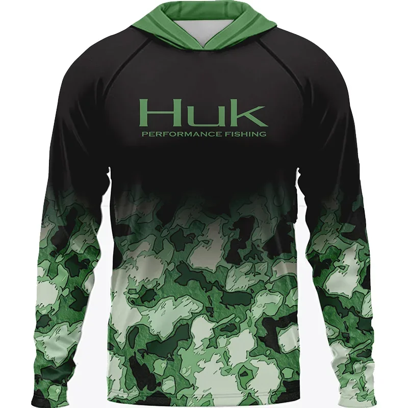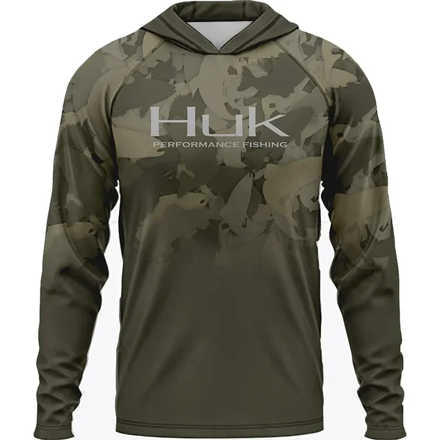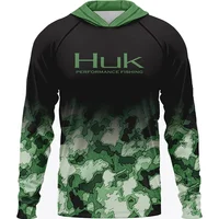 Men ’s Fishing Shirts Clothing HUK Long Sleeve T-shirt UPF 50 Hood Sun Protection Uv Breathable Angling Fishing Wear Jacket