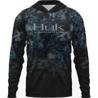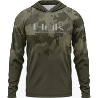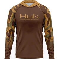 Men ’s Fishing Shirts Clothing HUK Long Sleeve T-shirt UPF 50 Hood Sun Protection Uv Breathable Angling