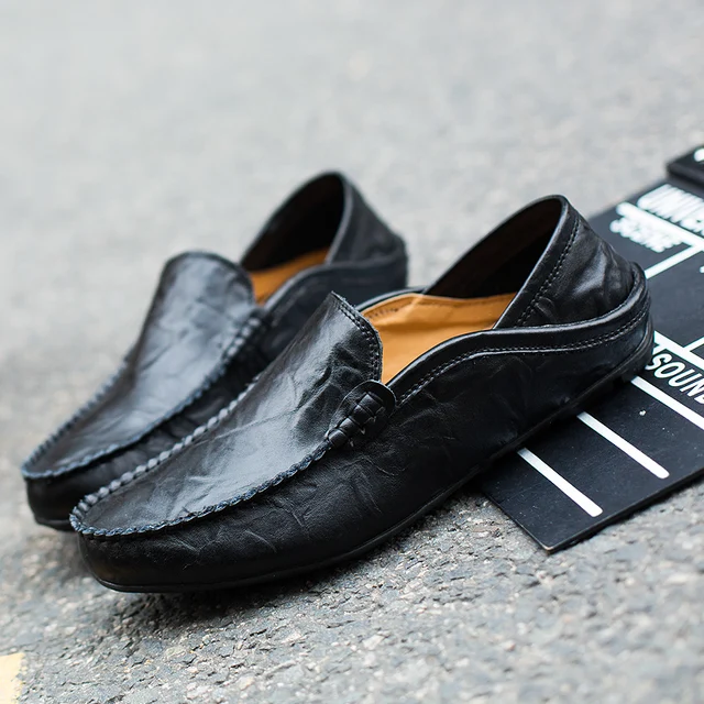 Men Shoes Casual Genuine Leather Mens Loafers Moccasins Designer Slip on Boat Shoes High Quality Chaussure Homme Plus Size 38-46