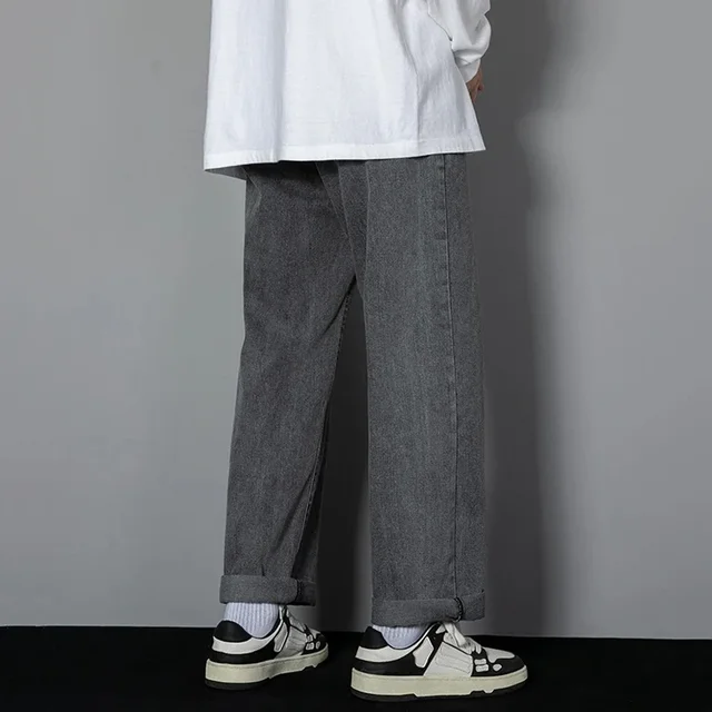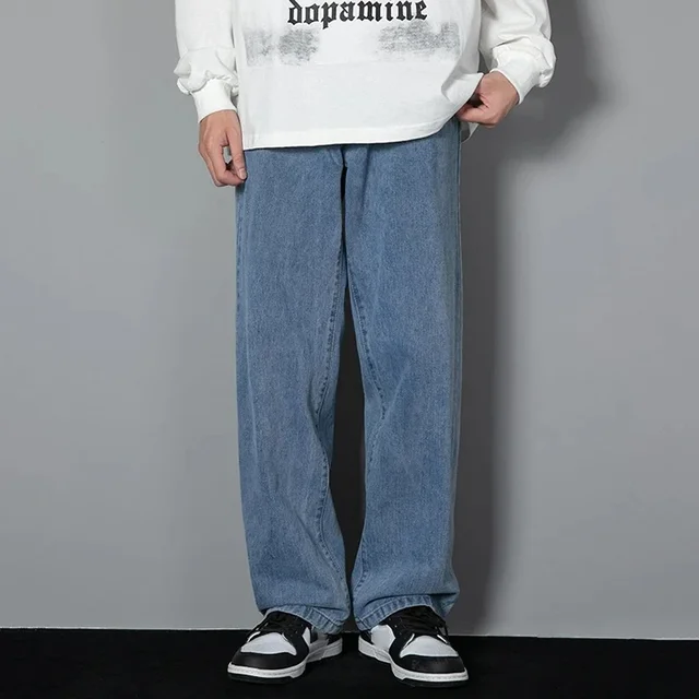 Men's Light Washed Straight Leg Jeans Loose Fit Casual Wide Trousers for Teen Boys Autumn