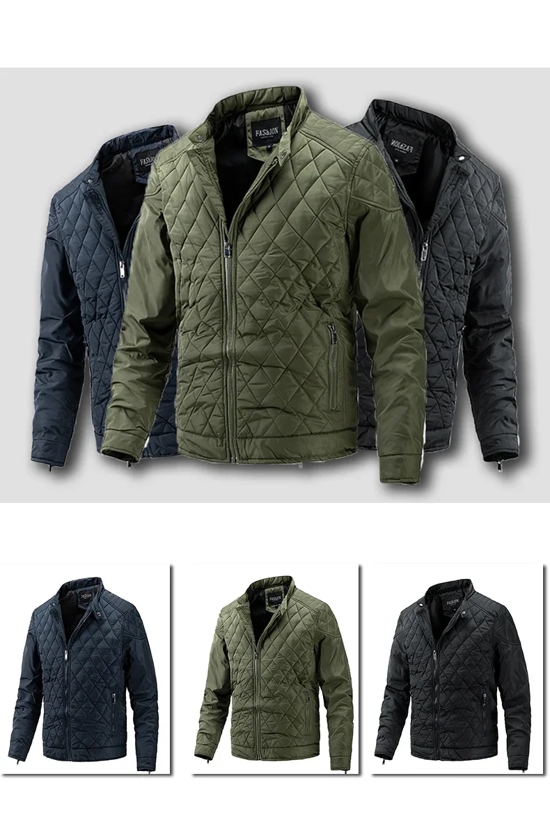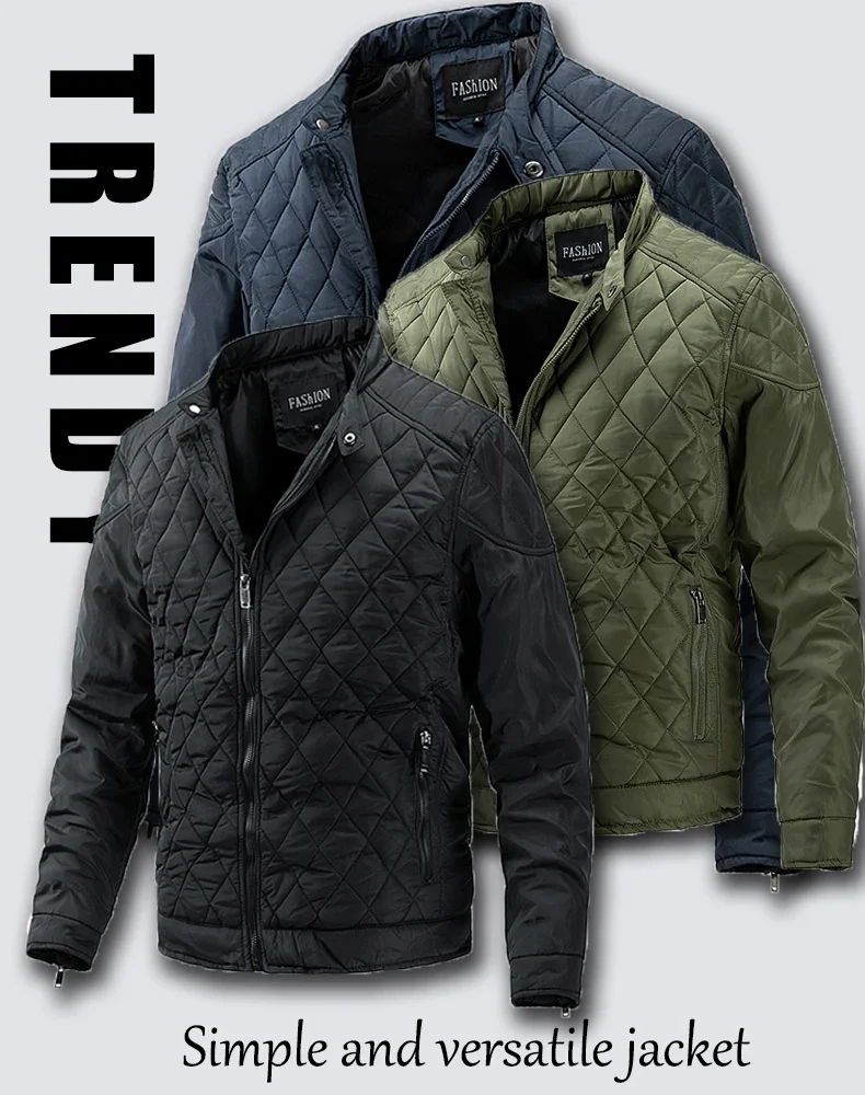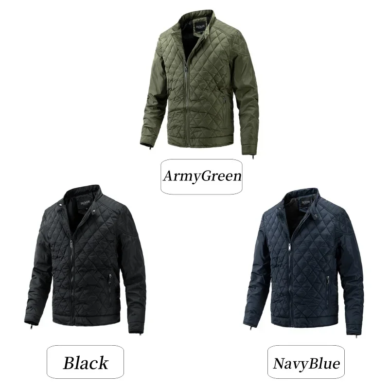 Men Solid Color Jacket Classic Stitched Thickened Autumn and Winter Warm High Quality Cotton-padded Casual