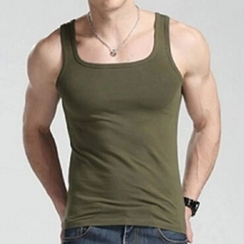 Men Sports Vest Sleeveless Square Neck Bodybuilding Tank Tops Sweat Absorption Elastic Jogging Gym Tank