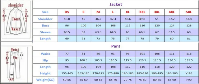 About Standard Size Chart: please choose the right size according to your own case, which is very important for us to make the suits for you. If you have any question, please contact us.