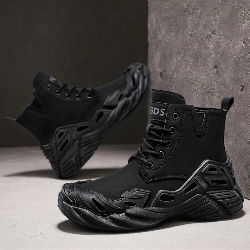 Men Tactical Boots with Straps for Combat Training Waterproof Straps Multifunctional Breathable Motorcycle Outdoor Hiking Shoes