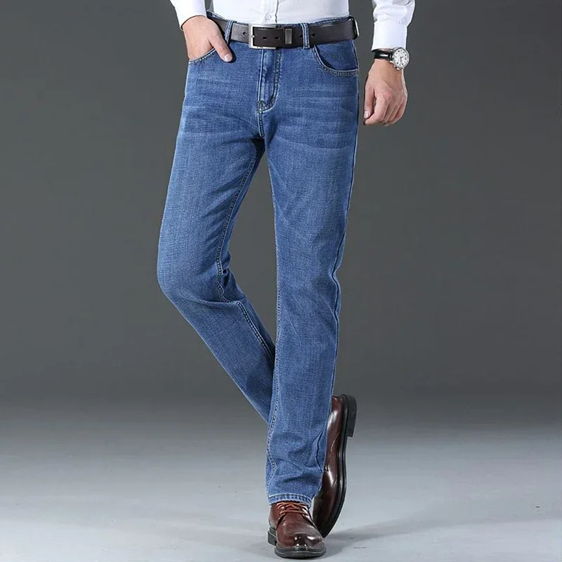 Light Blue Men's Jeans Summer Thin Loose Straight Leg Large Size Casual Pants Wide Leg Trousers Comfortable Loose Fit Jeans