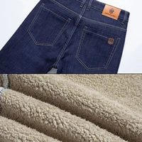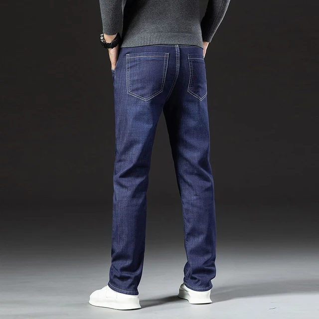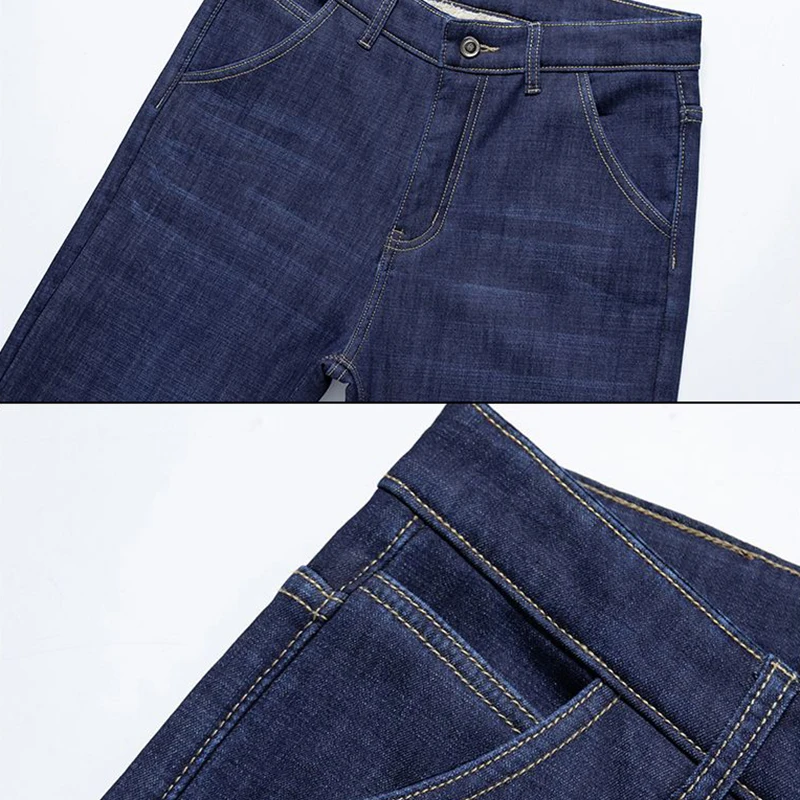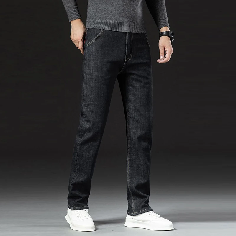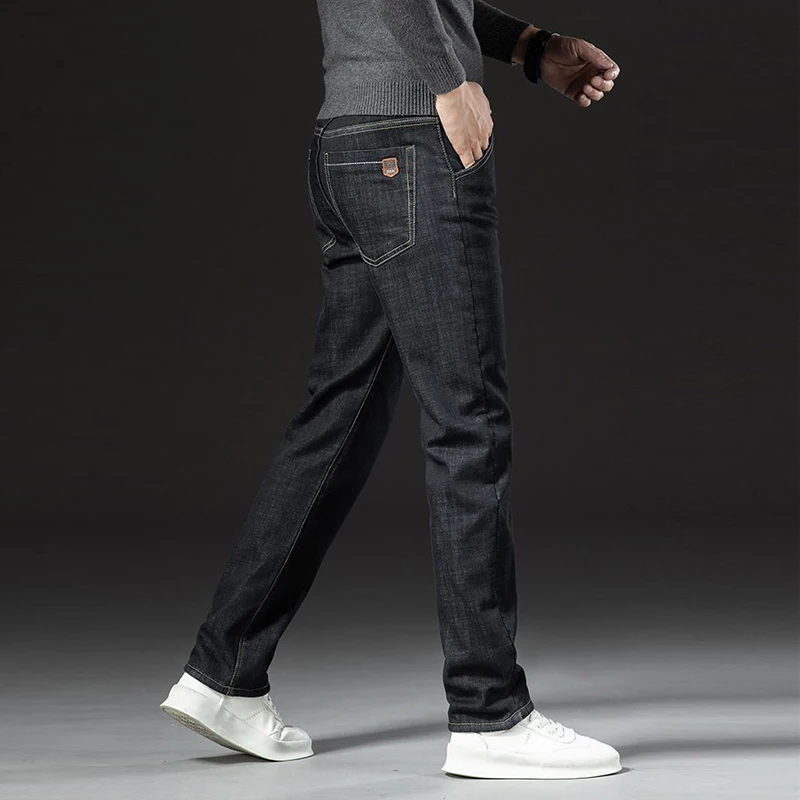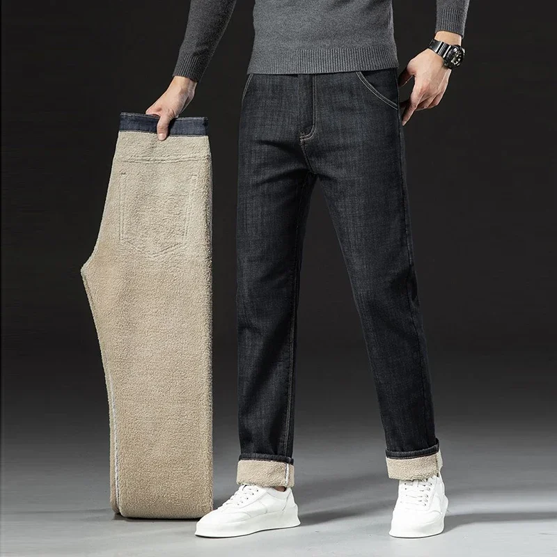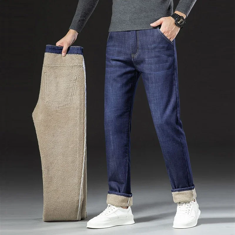Men Winter Fleece Lined Thickened Warm Jeans Male Fashion Loose Straight Denim Pants Smart Casual Comfortable