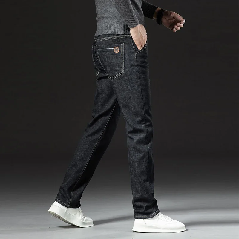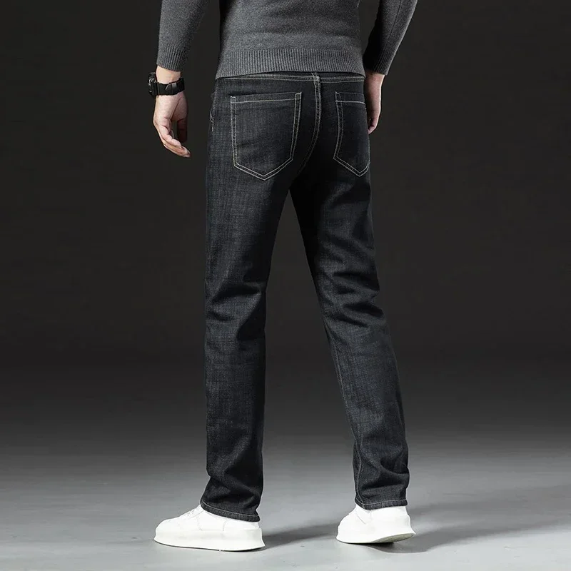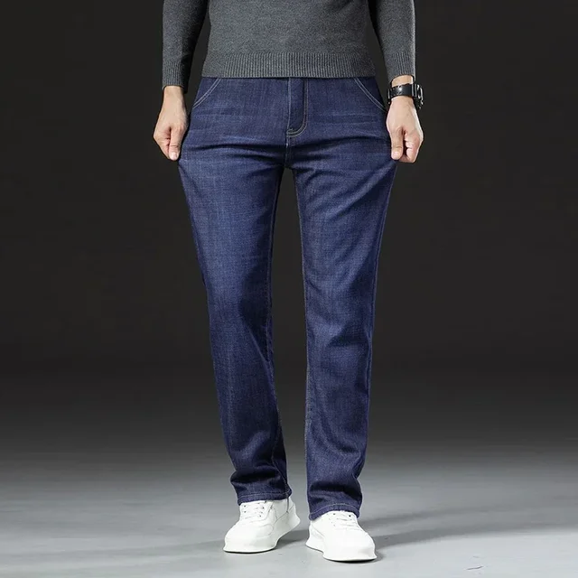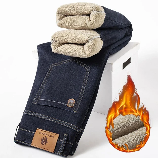 Men Winter Fleece Lined Thickened Warm Jeans Male Fashion Loose Straight Slim Fit Denim Pants Smart Casual