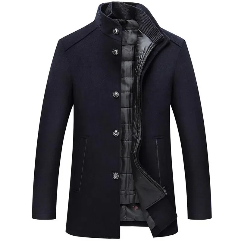 Men Winter Windbreaker Long Thick Wool Jackets Abrigo Hombre Man Stand Collar Single Breasted with Vest
